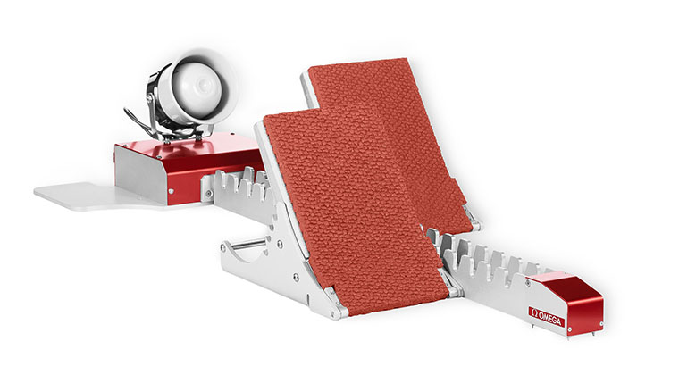 การออกตัวอย่างยุติธรรมคือหัวใจของการแข่งขัน แต่ปัญหาของปืนสัญญาณออกตัวแบบดั้งเดิมคือนักกีฬาที่อยู่ในเลนที่ไกลที่สุดจะได้ยินเสียงปืนช้ากว่าเลนที่อยู่ใกล้ที่สุด ในปัจจุบัน ปืนสัญญาณออกตัวอิเล็กทรอนิกส์ของ OMEGA ได้เชื่อมต่อกับลำโพงที่ถูกติดตั้งอยู่ด้านหลังผู้เข้าแข่งขันแต่ละราย เมื่อทำการลั่นไก แสงไฟจะสว่างขึ้นพร้อมส่งพัลส์ออกตัวไปยังอุปกรณ์จับเวลา และที่สำคัญที่สุดคือเสียงที่จะดังขึ้นจากด้านหลังของนักกีฬาทุกคน การออกตัวจึงเป็นไปได้อย่างยุติธรรม
