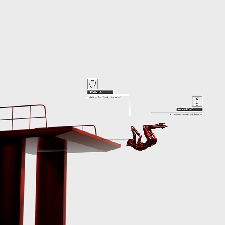 ระบบกล้องจะติดตามนักกระโดดน้ำตั้งแต่เริ่มต้นกระโดดจนถึงก่อนถึงผิวน้ำ ระหว่างช่วงเวลานั้น ทั้งปัญญาประดิษฐ์และอัลกอริทึมทางคณิตศาสตร์จะช่วยสร้างภาพสามมิติเพื่อจำลองการกระโดด มอบข้อมูลและคำนวณค่าต่างๆ (เช่น เวลาที่อยู่ในอากาศและความเร็วเมื่อถึงผิวน้ำ) ซึ่งช่วยให้ผู้ตัดสินสามารถตรวจสอบคุณภาพของการกระโดดได้ นอกจากการจัดระเบียบร่างกาย ข้อมูลภาพจะติดตามระยะห่างระหว่างนักกีฬากับแพลตฟอร์มระหว่างการกระโดดซึ่งเรียกว่า “ระยะปลอดภัย” และมันคือระยะห่างที่น้อยที่สุดที่ต้องการในแต่ละการกระโดด หากระยะดังกล่าวน้อยเกินไป นักกีฬาก็อาจถูกตัดคะแนน