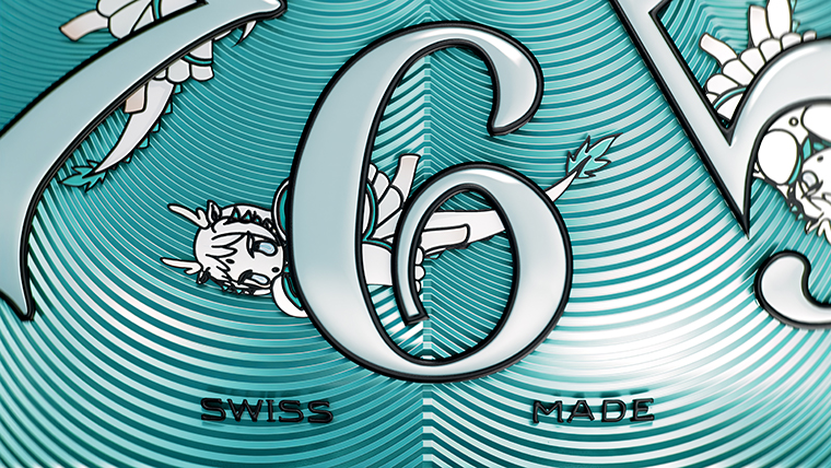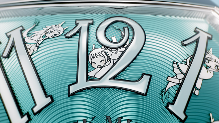 สำหรับความร่วมมือกับ Franck Muller ในครั้งนี้ คาเนตะได้ดึงความเชื่อโบราณของเอเชียตะวันออกที่ให้ความเคารพว่ามังกรนั้นเป็นสัตว์แห่งเทพเจ้า และมอบพรให้กับโลกด้วยฝนสำหรับการเก็บเกี่ยวผลิตผลอันอุดมสมบูรณ์ และในครั้งนี้ เธอยังได้เลือกใช้การตีความอันเรียบง่ายยิ่งขึ้นและสง่างามมากขึ้นที่นับเป็นความหลากหลายของสไตล์ของเธอ โดยตัวละครเหล่านี้บนหน้าปัดเรือนเวลาส่วนใหญ่อยู่ในเฉดสีดำและขาว ตกแต่งด้วยเฉดสีฟ้าทะเลบนหนวดมังกร เพื่อมอบภาพที่เชื่อมโยงถึงบทบาทของมังกรในฐานะผู้นำพามาซึ่งสายฝน การเปรียบเปรยเหล่านี้ยังขยายไปสู่เครื่องหมายอินเด็กซ์ด้วยสีสันที่คล้ายกัน ซึ่งนับเป็นอีกหนึ่งจุดเชื่อมโยงความสัมพันธ์ของมังกรที่มีต่อธาตุน้ำ ภาพสัญลักษณ์เหล่านี้ได้ขยายสู่หน้าปัดสีเทอร์ควอยซ์ซึ่งนำเสนอเฉดสีที่เข้ากันโดยการตกแต่งแล็กเกอร์ ขณะเดียวกันก็เล่นกับแสงผ่านลวดลายพื้นผิวแบบกิโยเช่ พร้อมทั้งสายนาฬิกาสีเทอร์ควอยซ์ที่โอบรับกับทุกองค์ประกอบเหล่านี้ได้อย่างงดงามสมบูรณ์แบบ