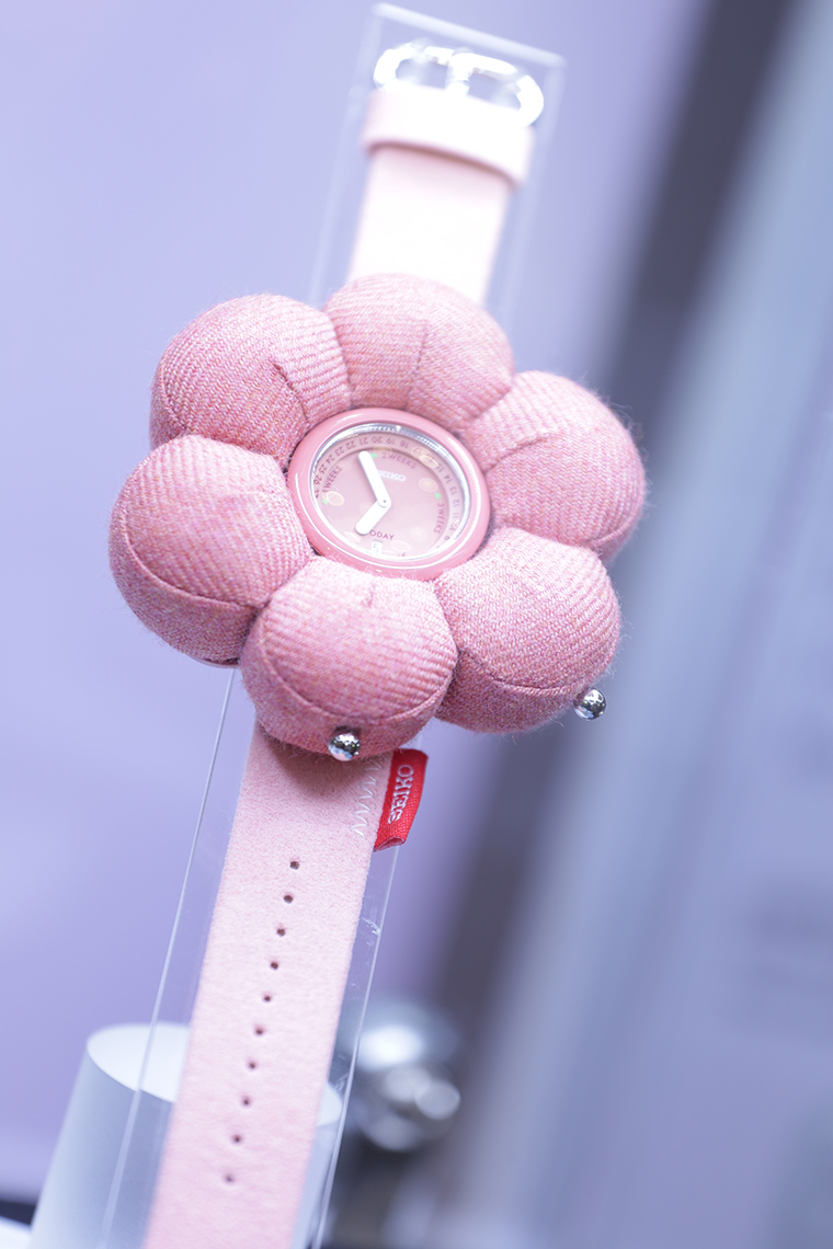ในอุตสาหกรรมเครื่องนุ่งหุ่ม ช่างทำแพทเทิร์นคือผู้เชี่ยวชาญที่แปลแบบร่างของนักออกแบบให้กลายเป็นแพทเทิร์น พวกเขายังสร้างตัวอย่างและให้คำแนะนำด้านการผลิตกับโรงงานอีกด้วย และหนึ่งในไอเท็มที่จะเห็นช่างทำแพทเทิร์นมีไว้บนข้อมือ หรือบนโต๊ะทำงาน นั่นก็คือหมอนปักเข็ม โดยดีไซน์ของนาฬิกาที่ออกมา ก็เป็นการผสมผสานนาฬิกาและหมอนปักเข็มเข้าด้วยกันอย่างลงตัว มีลักษณะคล้ายหมุดปักบนกลีบดอกไม้ที่มีผิวสัมผัสอันอ่อนนุ่ม โดยเม็ดมะยมมีลักษณะเหมือนหัวเข็มหมุดที่ปักลงบนหมอน