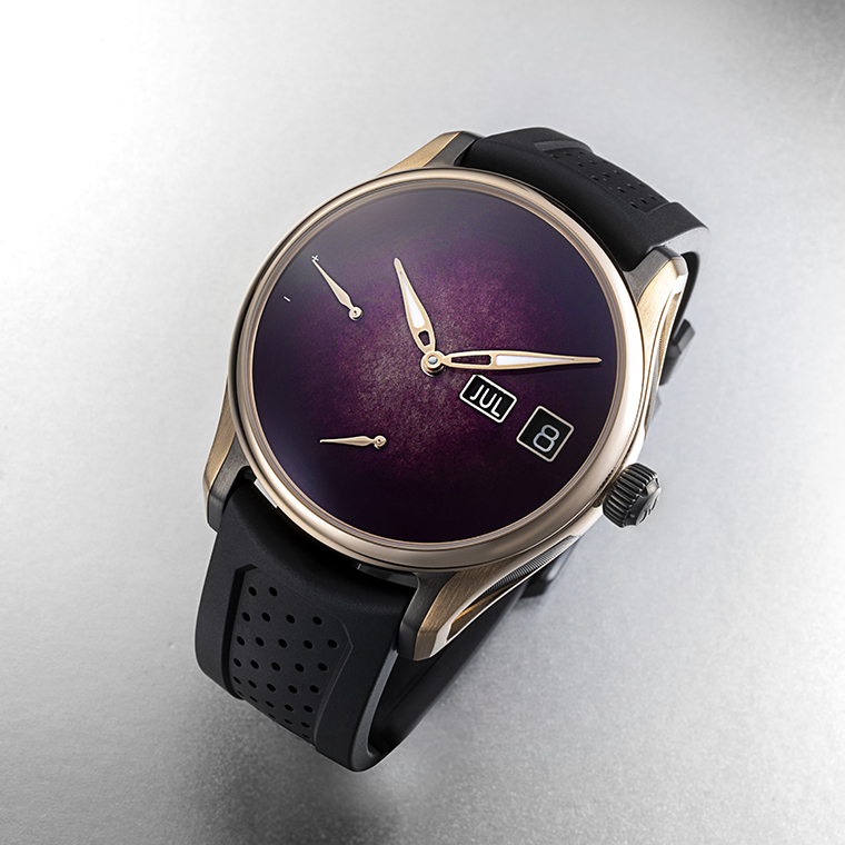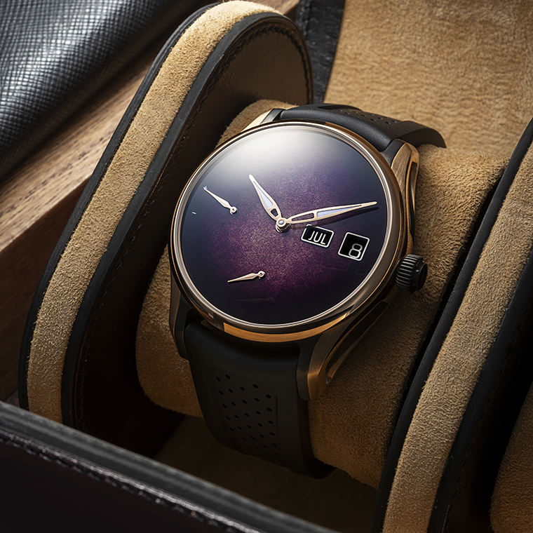หน้าปัดนาฬิกาอันเป็นเอกลักษณ์ของ H. Moser & Cie. ที่มีการสีไล่เฉดที่เรียกว่า Fume (ฟูเม่) นั้น ต้องผ่านการอบด้วยไฟหลายรอบ ประมาณ 10-12 ครั้ง ด้วยกรรมวิธีที่พิถีพิถันนี้ ทําให้หน้าปัดแต่ละเรือนมีความลึกและมิติ อันเป็นเอกลักษณ์ของเทคนิคการเคลือบอีนาเมลที่เรียก "Grand Feu” เท่านั้น ซึ่งช่วยให้มั่นใจได้ว่านาฬิกาทุกเรือนจะกลายเป็นผลงานชิ้นเอกที่ไม่เหมือนใครอีกด้วย โดยหน้าปัดแต่ละเรือนจะมีรายละเอียดที่โดดเด่น และสีม่วงอันล้ําลึก ชวนหลงใหล ซึ่งเป็นเครื่องหมายถึงความมุ่งมั่นและศิลปะอันแยบยลที่ H. Moser & Cie. ยึดมั่นมาตลอด