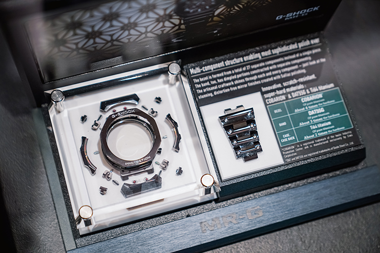 ชิ้นส่วนภายนอกได้รับการขัดเงาทีละชิ้นโดยช่างฝีมือชั้นยอด จากนั้นจะได้รับการประกอบเข้าด้วยกันอย่างพิถีพิถันเฉกเช่นเดียวกับงานไม้ คิกุมิ ซึ่งพัฒนาขึ้นในญี่ปุ่น CASIO จึงประสบความสำเร็จในการออกแบบตัวเรือนภายนอกที่ได้รับการรับประกันทั้งความแข็งแกร่งและความสวยงาม ขณะที่ตัวเรือน ฝาหลัง และปุ่มกดต่างๆ ได้รับการผลิตจากโลหะผสมไทเทเนียม Ti64 แบบพิเศษ