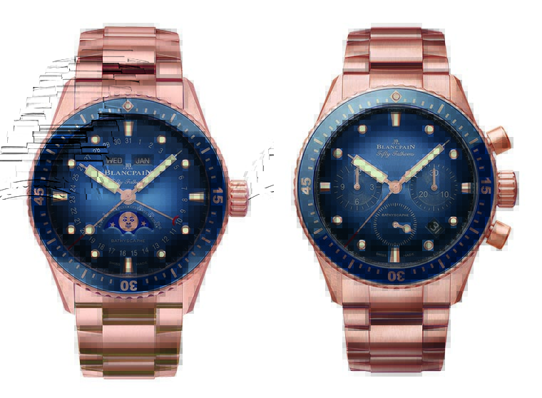 นาฬิกา Blancpain Fifty Fathoms (ฟิฟตี้ ฟาธอมส์) เปิดตัวครั้งแรกในปี 1953 ในฐานะนาฬิกาดำน้ำแบบแท้จริงเรือนแรกที่ถูกออกแบบมาเพื่อเป็นอุปกรณ์สำหรับนักดำน้ำมืออาชีพโดยเฉพาะ ในขณะที่เรือนเวลา Bathyscaphe ที่เปิดตัวตามมาในปี 1956 นั้นมีลักษณะที่เหมาะกับการสวมใส่ในชีวิตประจำวันเนื่องจากมีขนาดหน้าปัดที่เล็กกว่า แต่ก็เปี่ยมด้วยประสิทธิภาพที่พร้อมจะถูกนำไปใช้ในการสำรวจโลกใต้น้ำได้เช่นกัน