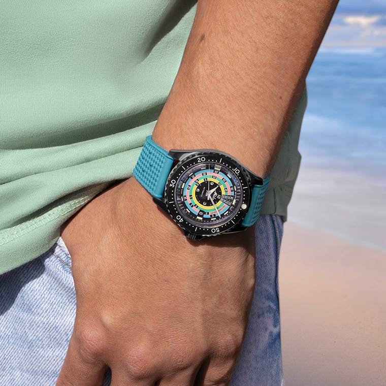 นอกจากนี้สายนาฬิกาที่สามารถถอดเปลี่ยนได้ 3 แบบ ได้แก่ สายสแตนเลสสตีลตาข่ายมิลานิสสีดำแวววาวให้ลุคสปอร์ตเท่ สายหนังลูกวัวแท้สีดำเข้มให้ลุคคลาสสิก และสายยางสีน้ำเงินผิวกึ่งเงาให้ลุคแคชชวลที่สามารถสวมใส่ได้ในชีวิตประจำวัน โดยสายนาฬิกาแต่ละสายช่วยเพิ่มสัมผัสและสไตล์ที่แตกต่างกันให้กับนาฬิการุ่นนี้ ด้วยการผสมผสานอย่างลงตัวระหว่างเทคโนโลยีอันล้ำสมัยและรูปลักษณ์แบบวินเทจสะท้อนถึงจิตวิญญาณแห่งการดำน้ำอันน่าตื่นเต้นในยุค 60s ได้เป็นอย่างดี โดยนาฬิการุ่นลิมิเต็ด อิดิชั่นนี้ มีจำนวนจำกัดเพียง 1,961 เรือนทั่วโลก บรรจุในกล่องดีไซน์สุดพิเศษ โดยภายในกล่องประกอบด้วยใบรับรองรุ่นลิมิเต็ด อิดิชั่น และชุดสายนาฬิกา 3 สาย ได้แก่ สายตาข่ายมิลานีสสแตนเลสสตีลขัดเงาเคลือบ PVD สีดำ สายยางสีน้ำเงินผิวกึ่งเงา และสายหนังลูกวัวแท้สีดำ พร้อมระบบเปลี่ยนสายแบบง่ายโดยไม่ต้องใช้เครื่องมือ ที่สามารถเปลี่ยนลุคให้เหมาะกับแต่ละโอกาสได้อย่างสะดวกสบาย
