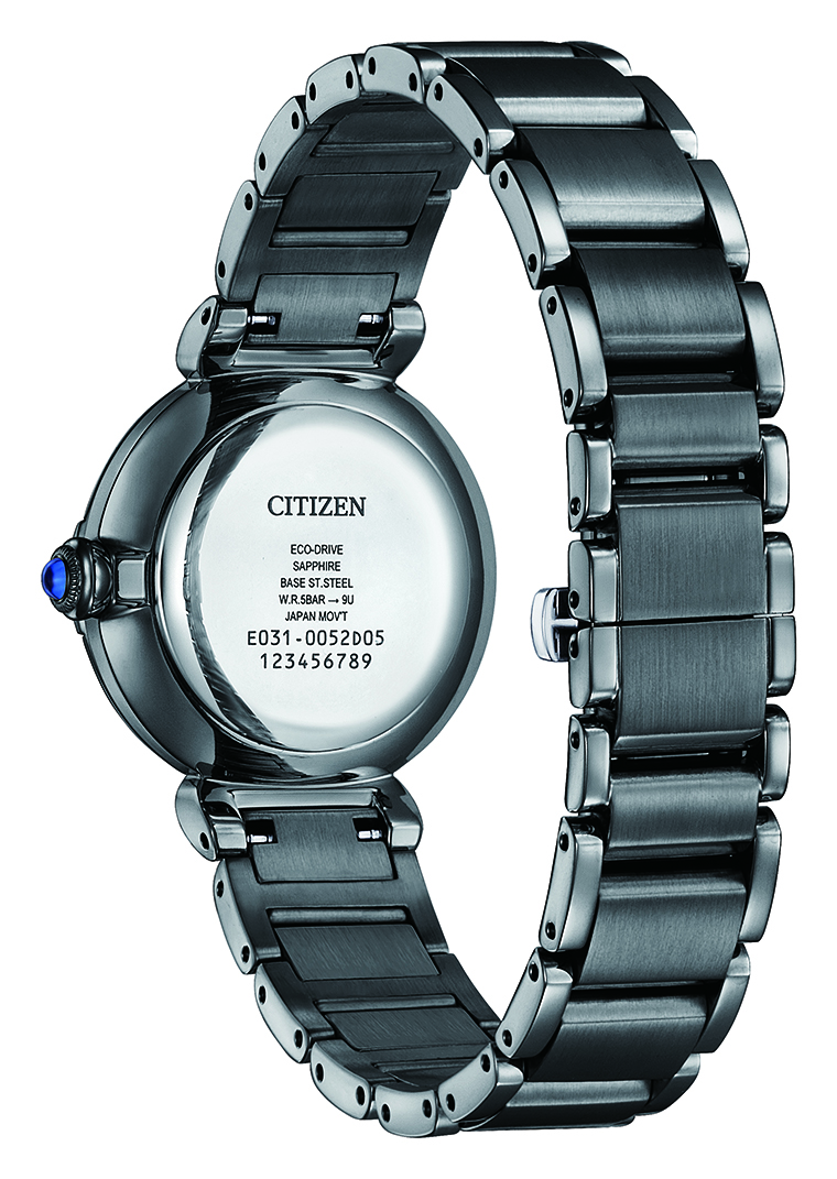 CITIZEN L Round Collection - Layers of Time โมเดล EM1067-88E ขับเคลื่อนด้วยกลไกพลังงานแสง Eco-Drive เทคโนโลยีเฉพาะของ CITIZEN นอกจากนี้หน้าปัดทำจากโพลีคาร์บอเนตที่ผ่านการรีไซเคิล 100% รวมถึงหมึกที่ครีเอตลวดลายหน้าปัดผลิตจาก FUJIFILM Corporation ปิดด้วยกระจกคริสตัลแซฟไฟร์กันรอยขีดข่วน