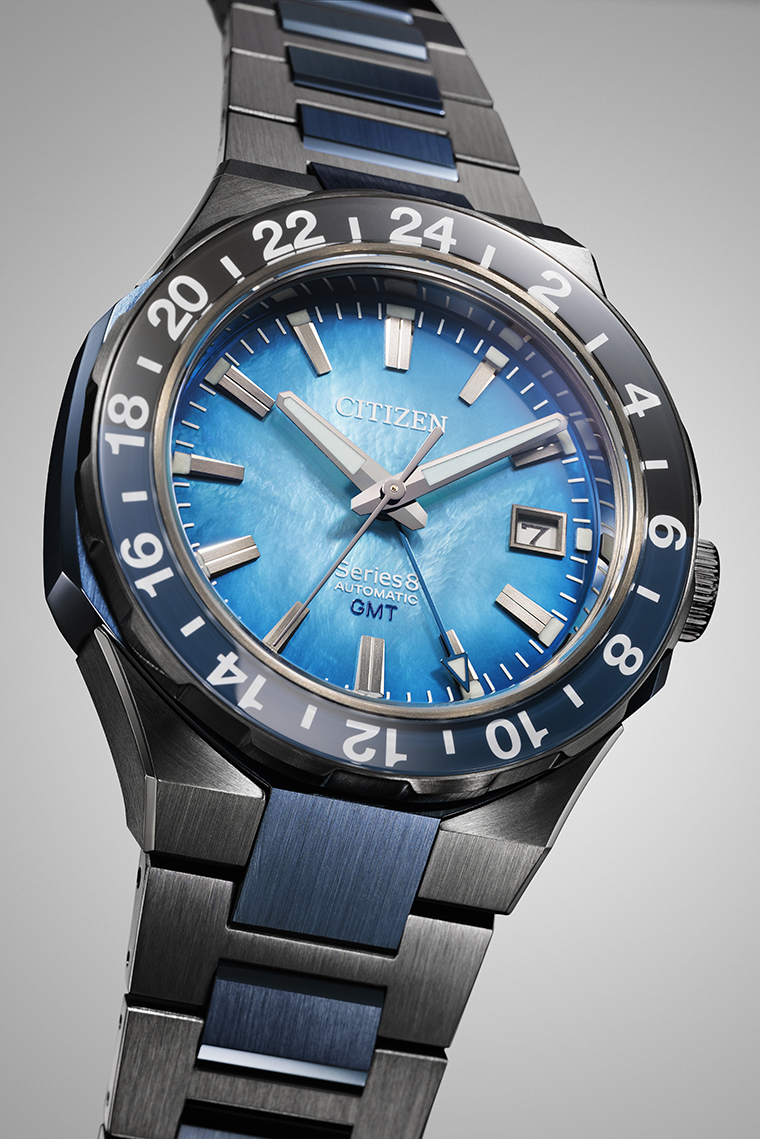 CITIZEN เผยให้เห็นถึงนาฬิกาเทคโนโลยีรุ่นใหม่ภายใต้คอลเลกชัน Series 8 880 Limited- edition ที่ผสานการใช้งานได้จริงและฟังก์ชันการใช้งานเข้ากับดีไซน์ทันสมัย ดั่งสโลแกนที่ว่า Better Starts Now หน้าปัด ถูกรังสรรค์ขึ้นอย่างประณีต โดยได้แรงบันดาลใจ จาก Mother of Pearl with Blue Gradation ในส่วนของตัวสายและตัวเรือนผลิตจากวัสดุสตีลสีทูโทน สีเทา (Gray) และ สีฟ้า (Blue) สะท้อนถึงความละมุนที่ผสมผสานกับคล่องตัวได้อย่างมีมิติชวนมอง อีกหนึ่งความโดดเด่นของ Series 8 รุ่นล่าสุดนี้ สายนาฬิกายังเชื่อมต่อกับตัวเรือนแบบไร้รอยต่อสุดหรู ขับเคลื่อนด้วยกลไกระบบการทำงาน GMT Function แสดงเวลา 2 Time Zone เพิ่มความแข็งแกร่งให้หน้าปัดด้วย Sapphire glass และเคลือบป้องกันการสะท้อนแสง สามารถลุยน้ำลึกได้กับคุณถึง 100 เมตร