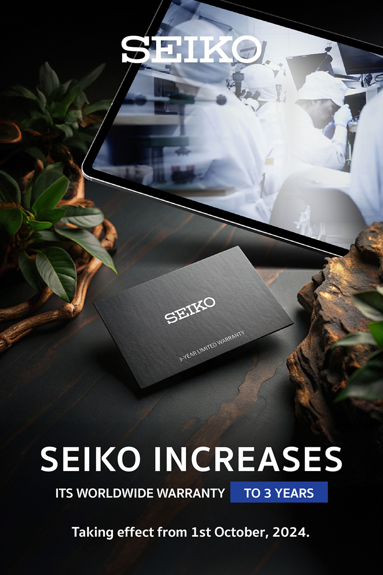 มีผลตั้งแต่วันที่ 1 ตุลาคม 2567 เป็นต้นไป โดยการขยายเวลารับประกันใหม่นี้จะคุ้มครองครอบคลุมตามเงื่อนไขเดิม เพื่อเป็นการเพิ่มความเชื่อมั่น รวมถึงความไว้วางใจในแบรนด์สินค้าให้กับเจ้าของนาฬิกา Seiko ทุกท่าน อีกทั้งยังเพื่อสร้างความมั่นใจในการใช้งานผลิตภัณฑ์ Seiko ทุกชิ้นอีกด้วย