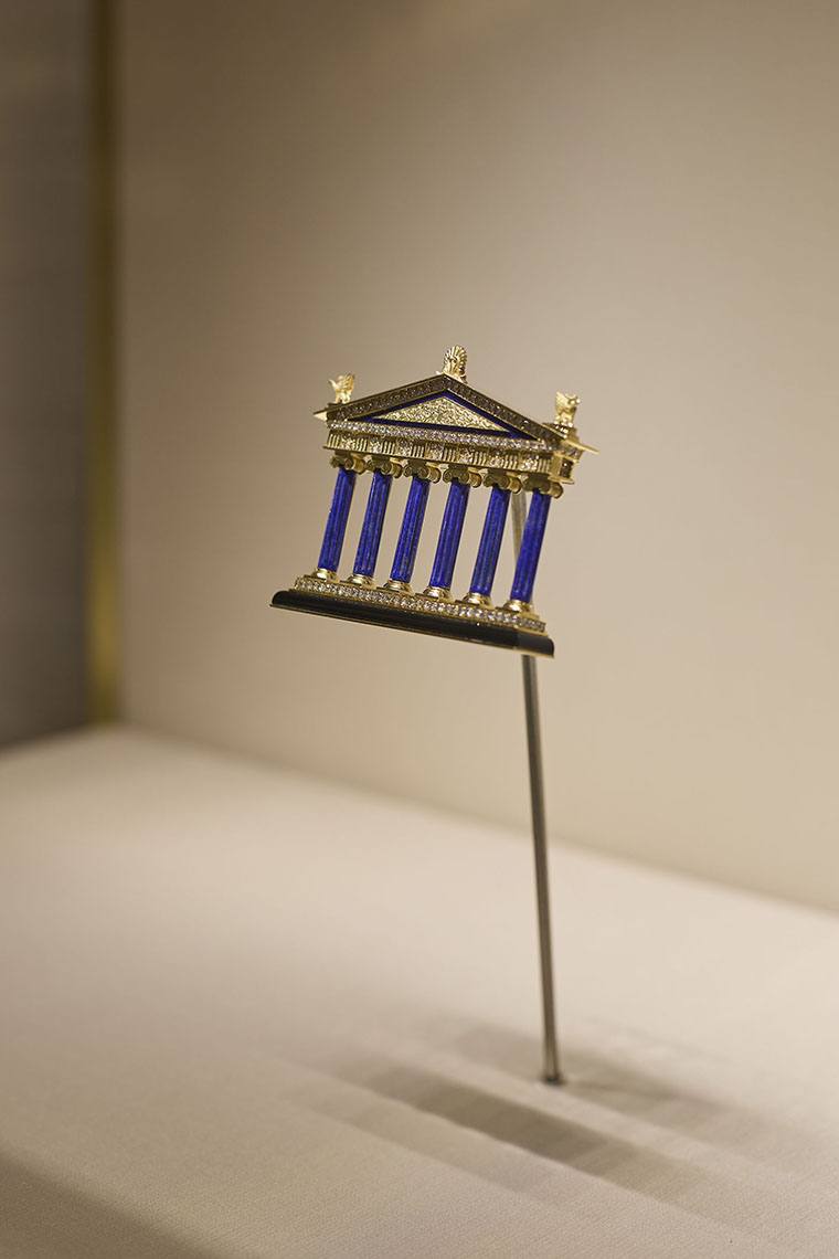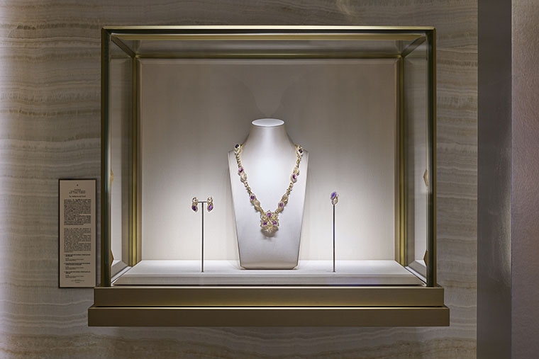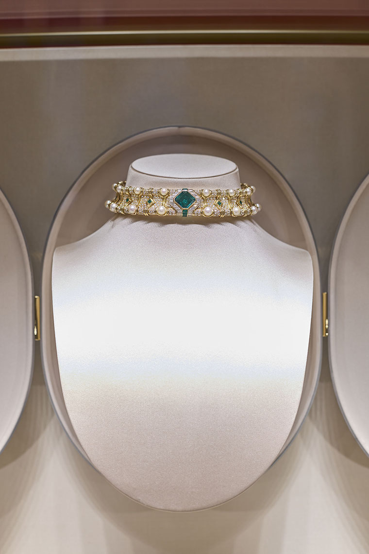 การผสมผสานสิ่งที่ดีที่สุดของสไตล์และยุคสมัยแห่งเมืองเป็นนิรันดร์นี้ ยังได้สะท้อนสู่งานออกแบบอันโดดเด่น ด้วยการหล่อหลอมระหว่างอัญมณีอันน่าทึ่ง และงานฝีมือที่มิอาจเทียบเคียงได้ ภายใต้ผลงานเครื่องประดับอัญมณีระดับมาสเตอร์พีซที่นำมาจัดแสดงในนิทรรศการ ซึ่งรวมไปถึงชิ้นงานประวัติศาสตร์และอัญมณีล้ำค่าจาก Bvlgari Heritage คอลเลกชั่น อาทิ สร้อยคอทำจากแพลทินัม พร้อมด้วยแซฟไฟร์และเพชร (ปี ค.ศ. 1965), สร้อยคอ “Bib” (“บิบ”) ทำจากทองและแพลทินัม พร้อมด้วยมรกต อเมทิสต์ เทอร์ควอยซ์และเพชร (ปี ค.ศ. 1968), สร้อยคอ-โชกเกอร์ โมเนเต้ (Monete) เปลี่ยนรูปแบบการสวมได้ และเข็มกลัด ทำจากทองและเหรียญจักรวรรดิโรมันทอง เงิน และสัมฤทธิ์ประดับเพชร (ปี ค.ศ. 1975)