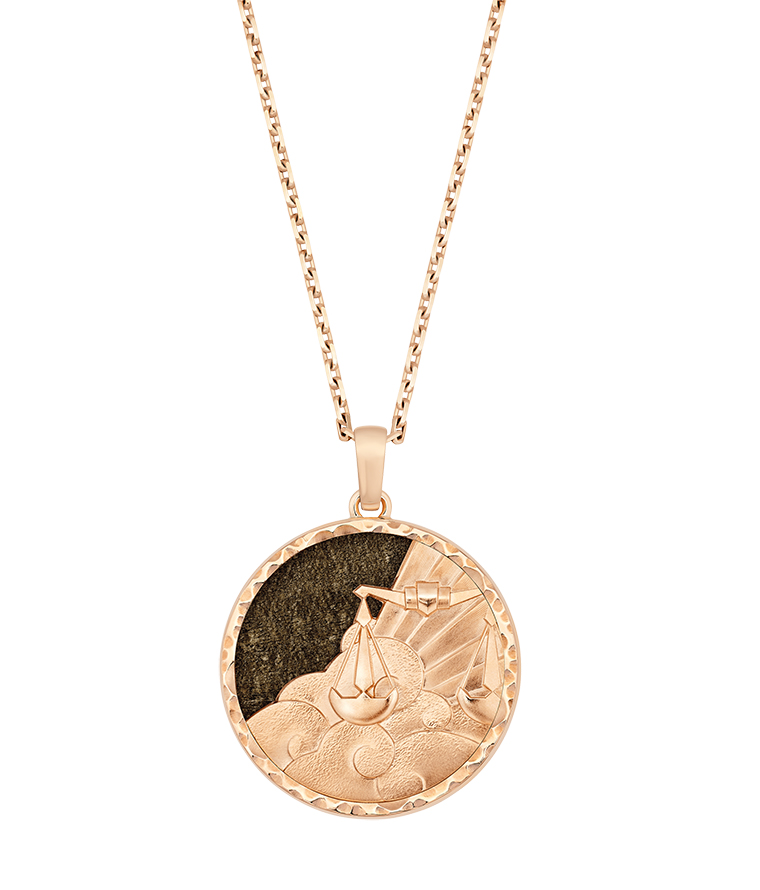 จากความหลงใหลในความงดงามของท้องฟ้า Van Cleef & Arpels จึงได้สร้างสรรค์คอลเลกชันเครื่องประดับที่สะท้อนสัญลักษณ์ของกลุ่มดาวต่างๆ ซึ่งในเดือนตุลาคมนี้เมซงขอนำเสนอเครื่องประดับประจำราศีตุลย์ ที่ได้อาศัยแรงบันดาลใจการออกแบบจากตาชั่งในมือของเธมิส เทพีกรีกผู้งดงาม เทพแห่งความเที่ยงตรง และรักความยุติธรรมสมกับความหมายของชื่อที่แปลว่า “กฎสวรรค์” โดยสร้อยคอประดับโมทิฟทั้งสองด้านเป็นภาพสามมิติ ด้านแรกเน้นถึงองค์ประกอบที่สัมพันธ์กับราศีนั้นๆ ถูกสลักให้นูนขึ้นมา นำเสนอในรูปแบบกราฟิกแบบอาร์ตเดโค (Art Deco) ที่อยู่พื้นหลัง และด้านหลังของสร้อยคอมีการประดับลวดลายทองคำที่แสดงสัญลักษณ์ของจักรราศี ชื่อราศี และวันที่ที่สอดคล้องกับปฏิทิน ผลงานสร้างสรรค์เหล่านี้ผสมผสานแรงบันดาลใจสองประการเข้าด้วยกัน นั่นคือธรรมชาติ และดาราศาสตร์