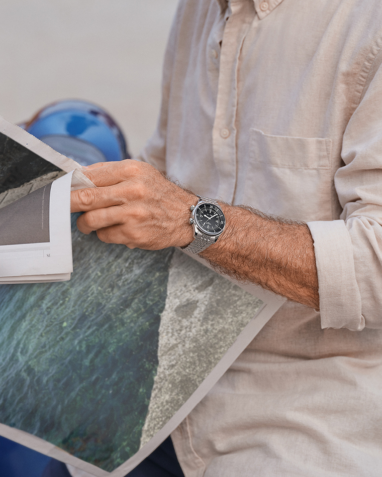 หน้าปัดอันโดดเด่นสะดุดตาและปราศจากการบอกวันที่อยู่ภายใต้กระจกคริสตัลแซฟไฟร์ทรงโดมที่ผ่านการเคลือบเมทัลลิกสีดำและสารป้องกันแสงสะท้อนหลายชั้นทั้งสองด้าน หลักชั่วโมงถูกตกแต่งด้วยอินเด็กซ์ทรงยาวและเลขอารบิกนูนสูงเคลือบด้วย Super-LumiNova® เข็มนาฬิกาปลายลูกศรชุบโรเดียมขัดเงาเคลือบด้วย Super-LumiNova® เช่นกัน ซึ่งช่วยให้อ่านค่าเวลาได้ง่ายดายในทุกสถานการณ์ คุณสมบัติความปลอดภัยเพิ่มเติมสำหรับนักดำน้ำคือเข็มวินาทีที่มีปลายเรืองแสงซึ่งทำหน้าที่ยืนยันว่านาฬิกากำลังทำงานอยู่แม้ในความมืดก็ตาม