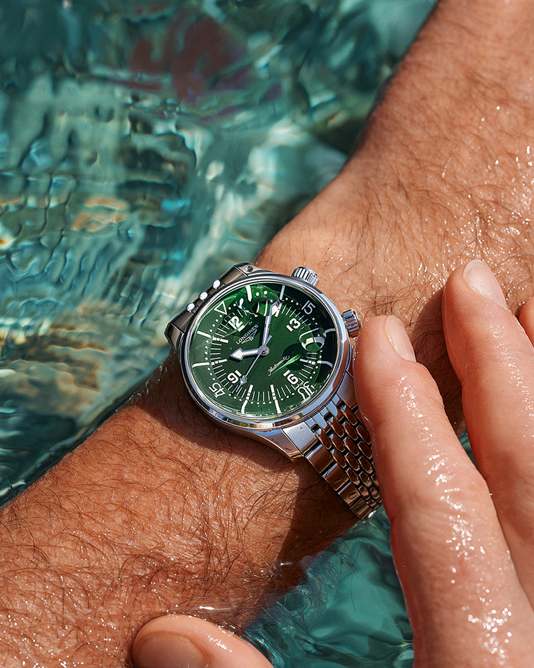 นาฬิกา Longines Legend Diver แต่เดิมถูกออกแบบมาเพื่อการสำรวจใต้น้ำ แต่ยังเหมาะสำหรับการใช้งานบนบกด้วยเช่นกัน ด้วยดีไซน์เหนือกาลเวลาและประสิทธิภาพล้ำสมัยส่งให้นาฬิกาเรือนนี้กลายเป็นไอคอนแห่งวงการนาฬิกาอย่างแท้จริง ในปี 2024 เนื่องในโอกาสครบรอบ 65 ปี คอลเลคชั่นนี้ได้รับการขยายใหญ่ขึ้นด้วยหน้าปัดใหม่ในสีเขียว สีเทอร์ราคอตตา และสีเทาแอนธราไซต์ มาพร้อมกับตัวเรือน สแตนเลสสตีลขนาด 39 มม. สามารถกันน้ำได้ระดับ 30 บาร์ (300 เมตร) ได้รับการรับรองโครโนมิเตอร์โดย COSC (สถาบันทดสอบความเที่ยงตรงของนาฬิกาแห่งสวิตเซอร์แลนด์) และในฐานะนาฬิกาดำน้ำตามมาตรฐาน ISO 6425