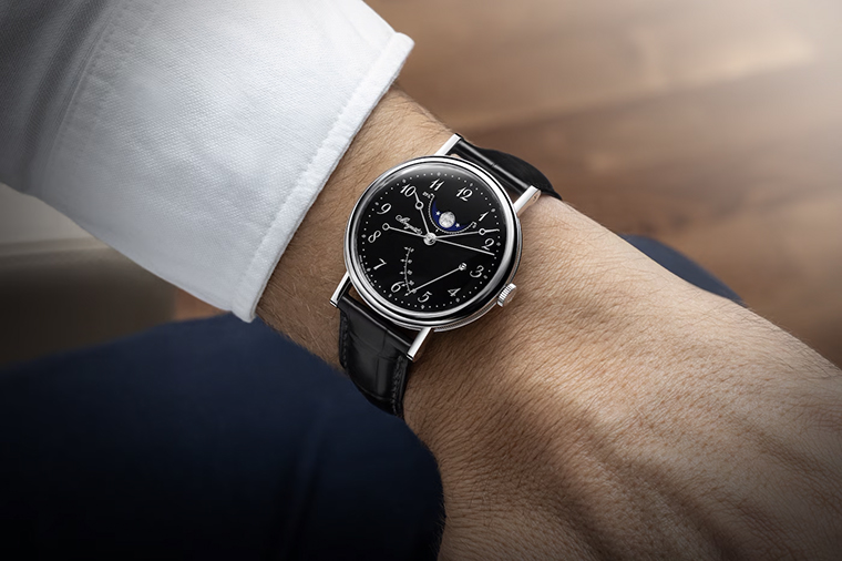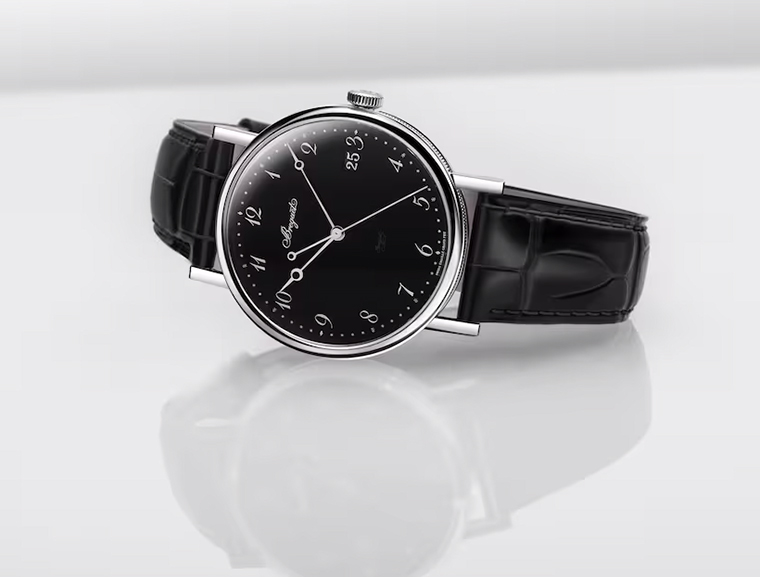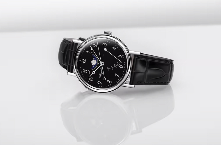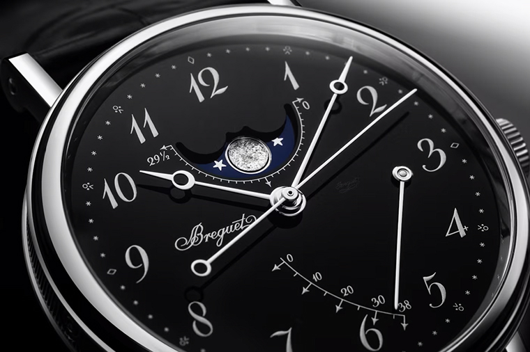 หน้าปัดสีดำสนิทดุจราตรี ส่องประกายงดงามด้วยเทคนิคการเคลือบ “Grand Feu” และเป็นครั้งแรกที่คอลเล็กชันนี้เผยโฉมในตัวเรือนแพลทินัม วัสดุทรงคุณค่าที่เป็นสัญลักษณ์แห่งความเป็นเลิศ เรือนเวลา Classique ของ Breguet (เบรเกต์) มาในโทนสีดำและเงินเพื่อสื่อถึงความสำคัญของกาลเวลา รุ่น 5177 โดดเด่นด้วยดีไซน์เรียบหรู ส่วนรุ่น 7787 มาพร้อมฟังก์ชันข้างขึ้นข้างแรม (moon phase) และมาตรแสดงค่าพลังงานสำรอง