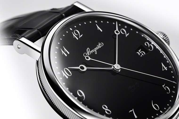เรือนเวลา Classique รุ่นใหม่นี้มาพร้อมหน้าปัดที่โค้ทติ้งด้วยเทคนิค "Grand Feu" สีดำเข้ม ซึ่งเป็นหนึ่งในเฉดสีที่สร้างสรรค์ได้ยากที่สุด หน้าปัดที่งดงามเรียบเนียนรุ่นนี้ตกแต่งด้วยตัวเลขอารบิกในแบบฉบับของ Breguet และมีหลักแสดงเวลาที่เคลือบด้วยผงสีเงินซึ่งตัดกับพื้นหน้าปัดอย่างโดดเด่น เข็มนาฬิกาปลาย "พระจันทร์" ทำจากแผ่นโรเดียม ทำหน้าที่แสดงชั่วโมง นาที และวินาที ยิ่งเสริมความงดงามของตัวเรือน นอกจากนี้ตามธรรมเนียมของช่างนาฬิกาในศตวรรษที่ 18 เพื่อเป็นการยืนยันว่ารังสรรค์โดยการเคลือบสีโคทติ้งแบบ "Grand Feu” อย่างแท้จริง บนหน้าปัดจะเผยให้เห็นลายเซ็น Breguet ณ ด้านขวาของจุดศูนย์กลางสำหรับรุ่น 7787 และอยู่ระหว่างจุดศูนย์กลางกับตำแหน่ง 6 นาฬิกาสำหรับรุ่น 5177