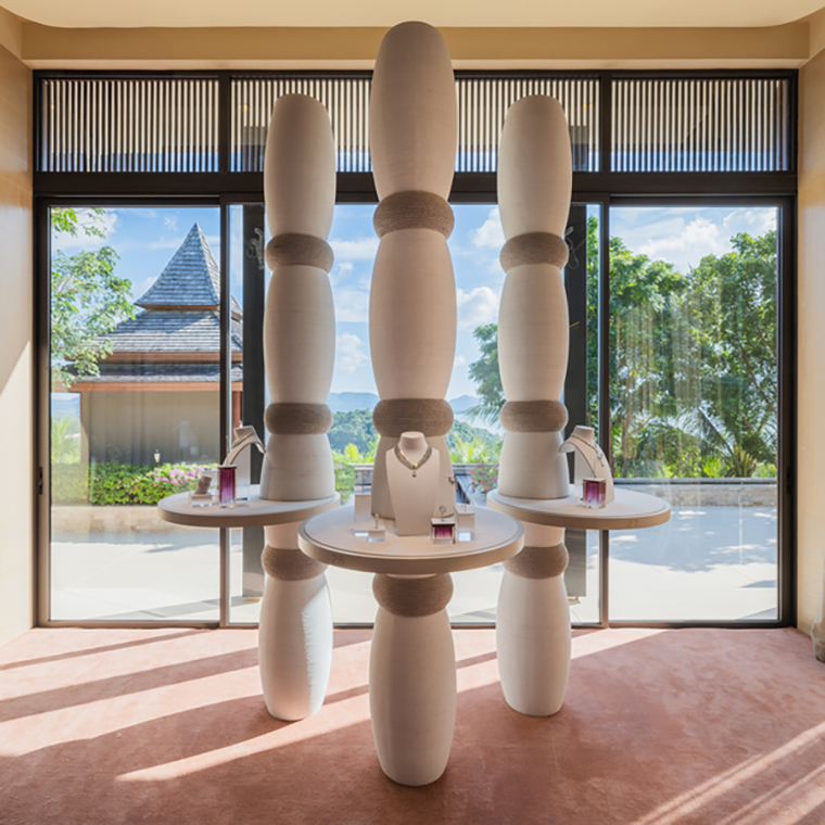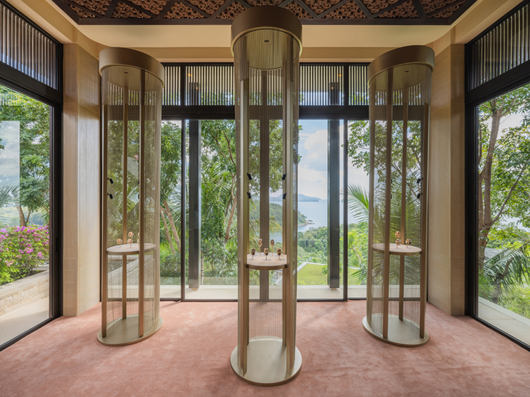 นิทรรศการในครั้งนี้ จัดขึ้นภายในไพรเวทเรสซิเดนซ์ริมผาที่โอบล้อมด้วยทิวทัศน์ของทะเลอันดามันรอบด้าน 180 องศา พื้นที่จัดแสดงชิ้นงานแบ่งออกเป็น 4 บท (4 ห้อง) นำเสนอไฮจิวเวลรี ผ่านศิลปะท้องถิ่น วัสดุ และงานหัตถศิลป์ เพื่อสะท้อนถึงความสำคัญของพื้นที่จัดงาน ซึ่งเคยเป็นศูนย์กลางการทำเหมืองแร่ในศตวรรษที่ 19 ชิ้นงานเครื่องประดับชั้นสูง ได้แสดงให้เห็นถึงจิตวิญญาณและเอกลักษณ์ของ Cartier อย่างเด่นชัดผ่านการเลือกใช้แสง (light), การเคลื่อนไหว (movement), สีสัน (colours) , และรูปทรง (shapes) ที่หลากหลาย จุดประกายให้เกิดความสนใจใคร่รู้และความตื่นตาตื่นใจไปกับคอลเลคชั่น