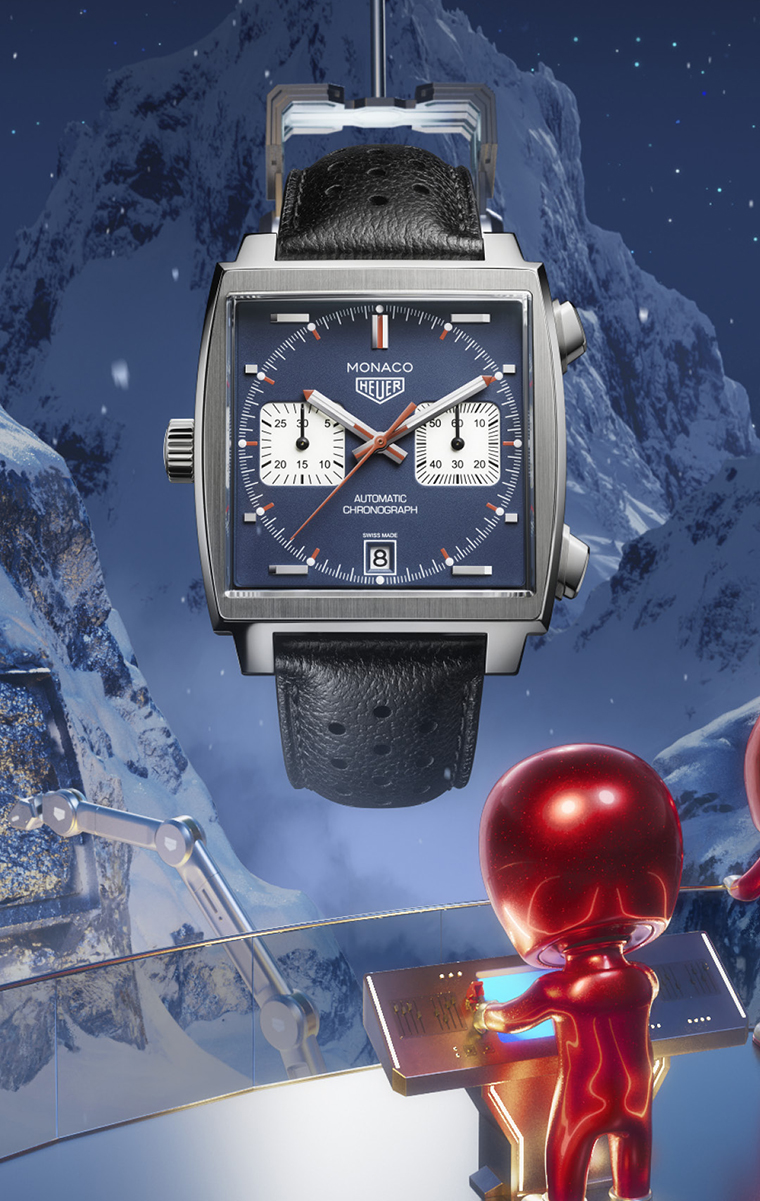 นาฬิกาเรือนพิเศษเรือนสุดท้ายที่ TAG Heuer ภูมิใจนำเสนอในวันนี้ คือสุดยอดมรดกที่ยังคงอยู่ในใจของผู้หลงใหลนาฬิกาทั่วโลก นั่นคือนาฬิการุ่น TAG Heuer Monaco Chronograph ซึ่งถือเป็นต้นแบบที่สำคัญของแบรนด์ โดดเด่นด้วยดีไซน์ตัวเรือนทรงสี่เหลี่ยมอันเป็นเอกลักษณ์ และการเป็นนาฬิกาทรงสี่เหลี่ยมและกันน้ำได้เป็นรุ่นแรกของโลก นับตั้งแต่ปี 1969 เน้นย้ำถึงความเป็นผู้นำด้านนวัตกรรมและความแม่นยำที่ TAG Heuer ยึดมั่นมาโดยตลอด ตัวเรือนถูกเสริมด้วยสายนาฬิกาที่ทำจากหนังลูกวัว ซึ่งพื้นผิวของสายนาฬิกาออกแบบให้เหมือนกับพื้นถนน ชวนให้สัมผัสถึงความเร้าใจแห่งโลกของความเร็วได้อย่างแท้จริง อีกทั้งยังมาพร้อมเข็มบอกเวลาที่เคลือบด้วยสารเรืองแสง Super-LumiNova® ช่วยให้สามารถอ่านเวลาได้อย่างชัดเจนแม้ในที่ที่แสงน้อย สะท้อนถึงวิสัยทัศน์ของ TAG Heuer ที่มุ่งมั่นให้ทุกคนสามารถอ่านเวลาได้ทุกเมื่อ