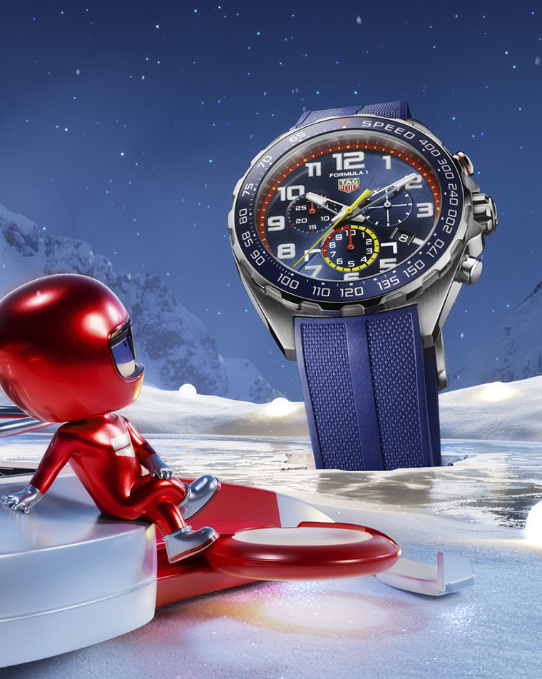 ถัดมาเป็นนาฬิการุ่นที่ได้รับการสร้างสรรค์เพื่อสร้างแรงผลักดันไปสู่ชัยชนะให้กับผู้สวมใส่ นั่นคือนาฬิการุ่น TAG Heuer Formula 1 Red Bull Racing Special Edition ที่เกิดจากความร่วมมือระหว่าง TAG Heuer และ Red Bull Racing ที่โดดเด่นด้วยดีไซน์ที่เพิ่มความสปอร์ต ช่วยให้ผู้สวมใส่พร้อมเผชิญทุกความท้าทายและเปี่ยมไปด้วยพลัง พร้อมด้วยหน้าปัดสีน้ำเงินขัดลายซันเรย์ มีการตกแต่งไฮไลต์สีแดงและเหลืองที่ขอบหน้าปัด เพื่อเสริมความดุดันและความสว่างให้กับตัวเรือน สายนาฬิกายางสีน้ำเงินพร้อมพื้นผิวพิเศษ เพิ่มลูกเล่นด้วยหัวเข็มขัดสลักชื่อ TAG Heuer เพื่อสะท้อนถึงสไตล์ที่เหนือระดับและสมบูรณ์แบบสำหรับผู้รักในความเร็ว