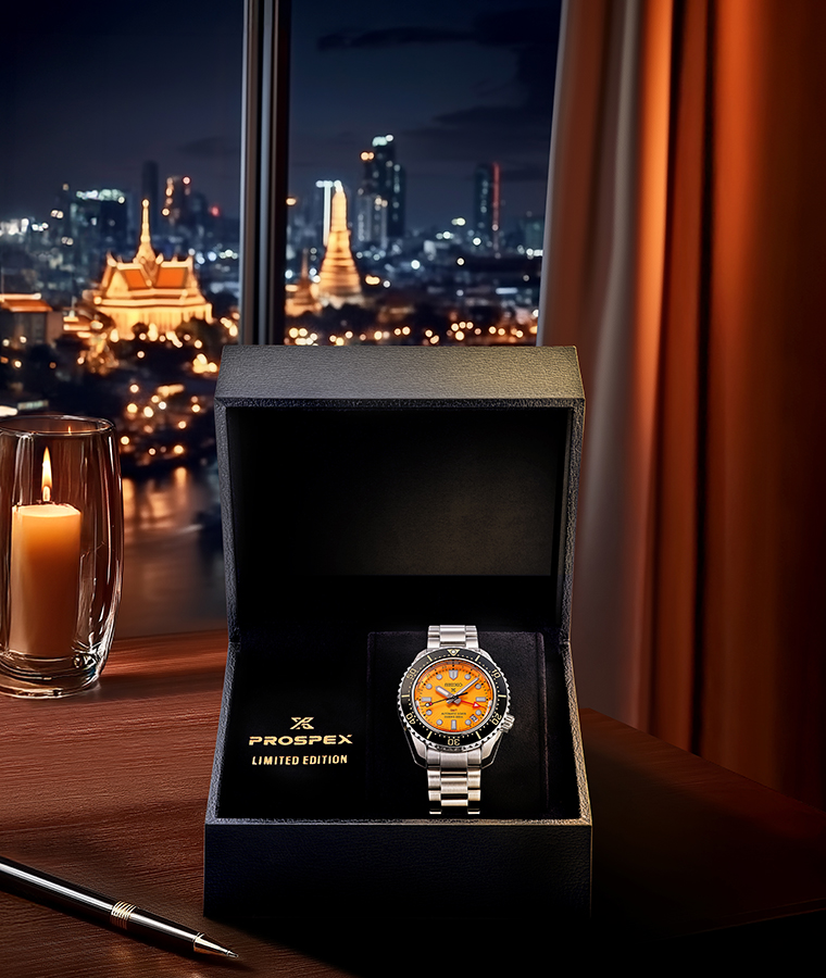 ครั้งนี้ ไซโก ขอพามาเปิดมุมมองแห่งความสวยงามตระการตา ของแสงไฟระยิบระยับยามอาทิตย์ลับขอบฟ้าแห่งเมืองสยาม ดินแดนที่ถูกเปรียบเปรยรูปลักษณ์จากภูมิศาสตร์ให้เหมือนด้ามขวานสีทอง แรงบันดาลใจสำหรับนาฬิกา Seiko Prospex รุ่นใหม่นี้