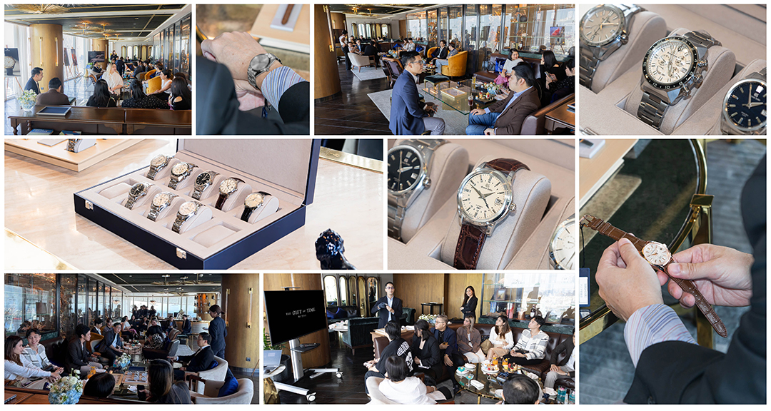 บรรยากาศภายในงาน จัดขึ้นในรูปแบบ Afternoon tea อย่างอบอุ่นและเป็นกันเอง โดยสื่อมวลชนทุกท่านนอกจากจะได้เพลิดเพลินกับขนมหวานและค็อกเทลเลิศรส ยังได้ยลโฉมและชื่นชมเรือนเวลา ซึ่งมาพร้อมนวัตกรรมใหม่ที่กำลังจะเปิดตัวในปี 2025 นี้ แต่ละรุ่นได้สะท้อนสเน่ห์ของการขับเคลื่อนกลไก ผ่านความราบรื่นของเข็มวินาทีอย่างเงียบสงบตามปรัชญาของแบรนด์ “The Nature of Time” หรือ “ธรรมชาติแห่งกาลเวลา”