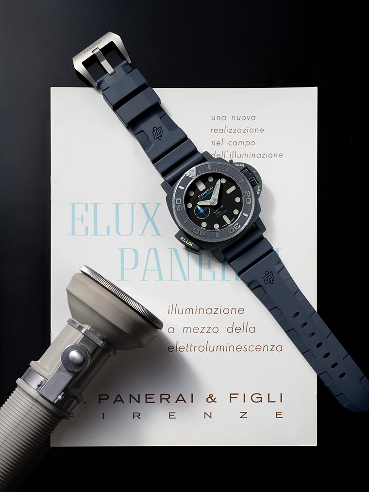 จากมรดกที่ถูกส่งต่อกันมา Submersible Elux LAB-ID PAM01800 รุ่นใหม่ ถือเป็นจุดสุดยอดของการเดินทางที่ได้รับอิทธิพลมาจากสิ่งประดิษฐ์ในอดีตที่เรียกว่า Elux Panerai ซึ่งได้รับการจดสิทธิบัตรแล้ว และถือเป็นการแสดงออกที่สมบูรณ์แบบถึงเป้าประสงค์ในการทำงานของ Laboratorio di Idee ตลอด 8 ปีของการวิจัยและพัฒนาที่ Panerai Manufacturing ในเมือง Neuchâtel นาฬิการุ่นใหม่นี้แสดงให้เห็นถึงพันธกิจในการทำงานที่สามารถสร้างสรรค์ให้กลายเป็นความจริง และยังเป็นตัวอย่างที่ดี ในการแสดงให้เห็นถึงประวัติ ศาสตร์แห่งความเชี่ยวชาญของ Maison ในด้านการเรืองแสงด้วยการผลิตนาฬิกาจักรกลที่สามารถทำให้สามารถเรืองแสงขึ้นมาได้ตามความต้องการของผู้ใช้งาน