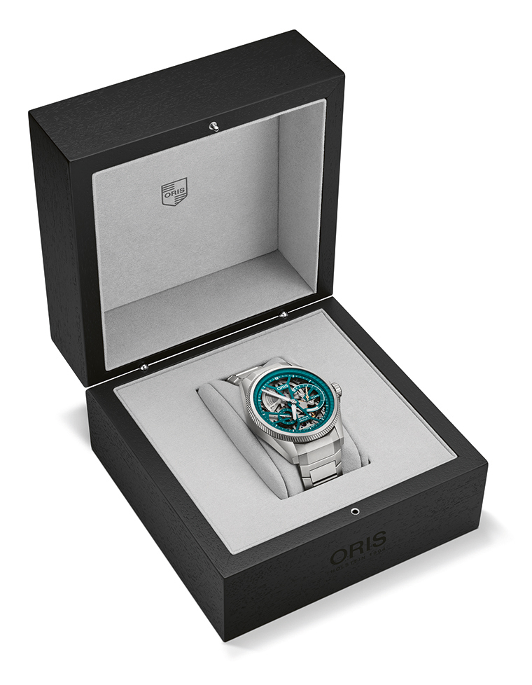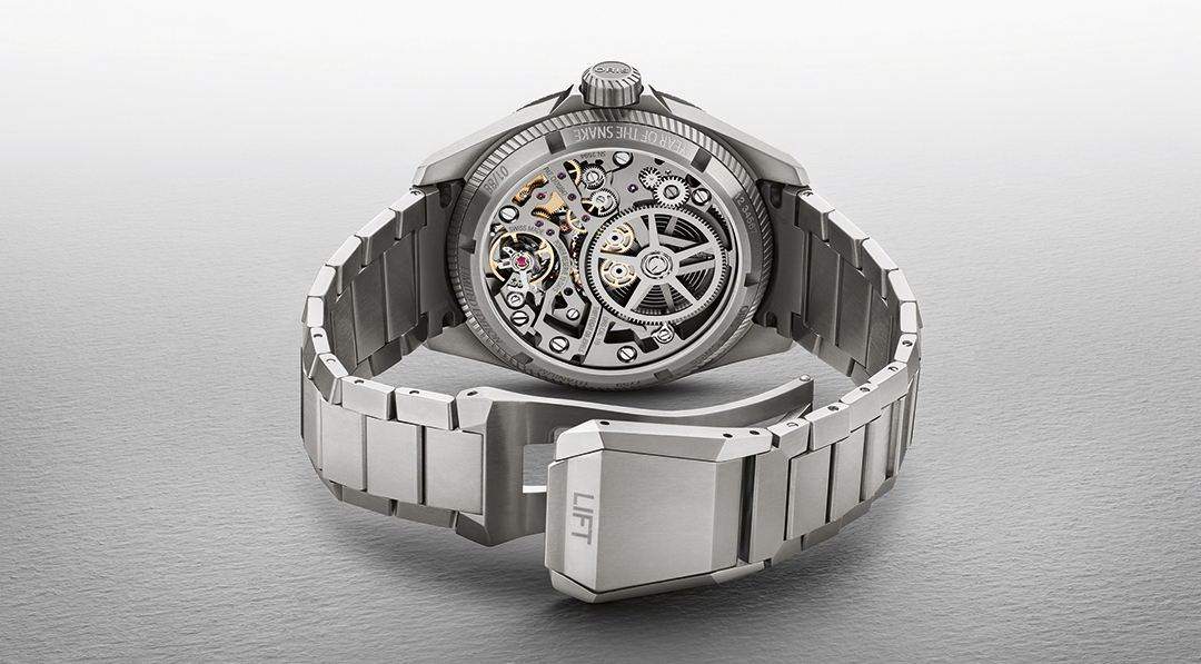 ภายในบรรจุกลไก Calibre 115 ซึ่งเป็นกลไกขึ้นลานด้วยมือที่พัฒนาขึ้นอินเฮ้าส์ของ Oris มาพร้อมพลังงานสำรองนาน 10 วัน และตัวชี้แสดงพลังงานสำรองแบบไม่เชิงเส้นที่ได้รับการจดสิทธิบัตร เพิ่มความพิเศษให้กับหน้าปัดด้วยเข็มแสดงระดับพลังงานสำรองที่ถูกออกแบบในรูปแบบของลิ้นงูสีทอง ส่วนด้านหลังตัวเรือนยังมีสลักพิเศษสัญลักษณ์นักษัตรปีงู สะท้อนถึงความพิถีพิถันในการออกแบบที่เชื่อมโยงกับวัฒนธรรมจีนได้อย่างวิจิตรและสมบูรณ์แบบ