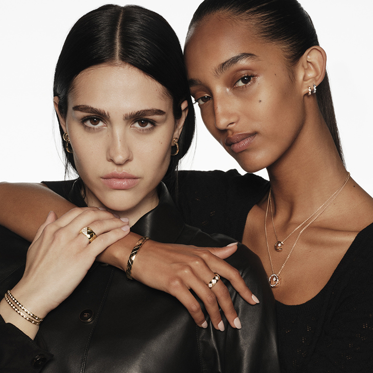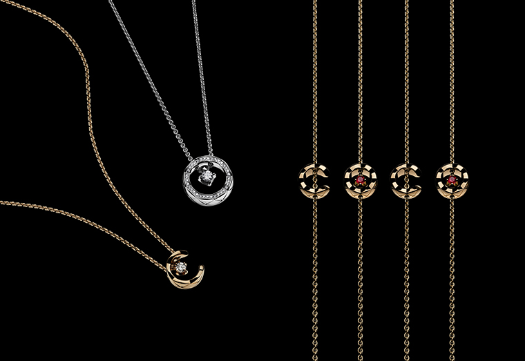 นับเป็นครั้งแรกที่ทองคำพร้อมลายเส้นที่ตัดกันถูกจับคู่กับทับทิมสีเข้ม เฉดสีที่สดใสของทับทิมประดับอยู่ในช่องของจี้รูปตัว C หรือเปล่งประกายตรงกลางตัว O บนสร้อยข้อมือ ตัวอักษร C และ O สะกดเป็นคำว่า C.O.C.O. เมื่อสวมคู่กันที่ข้อมือ บนใบหู หรือบนเนินอก การผสมผสานนี้เป็นการเชิญชวนให้เล่นกับสีสันและเอกลักษณ์ของคอลเลคชั่นที่ถือกำเนิดขึ้น เพื่อยกย่องความเบาสบาย ตำนานบทใหม่ในเรื่องราวอันลํ้าค่าของ COCO CRUSH และเป็นโอกาสในการถ่ายทอดทัศนคติที่มุ่งมั่นของ Chanel อีกครั้งโดยผ่านความเปิดกว้างของคอลเลคชั่นและวิธีการสวมใส่ที่หลากหลาย