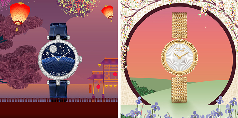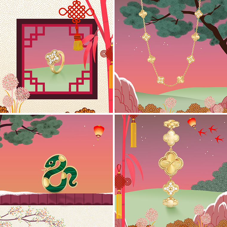 โคมไฟขอพรล่องลอยสู่ผืนฟ้าท่ามกลางประกายแสงสว่างของดอกไม้ไฟ Van Cleef & Arpels เฉลิมฉลองความงามของเทศกาลฤดูใบไม้ผลิหรือ “ตรุษจีน” ในปีนี้ ไม่ว่าจะเป็นเข็มกลัดงูนำโชคจากคอลเลกชัน Lucky Animal, เครื่องประดับจากคอลเลกชัน  Perlée, สร้อยคอ ต่างหูและแหวน จากคอลเลกชัน Alhambra ที่ประดับด้วยโมราสีเพลิง (คาร์เนเลียน) ช่วยเสริมโชคลาภและความสำเร็จในปีนี้