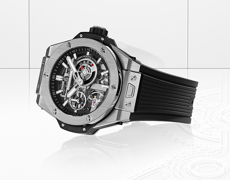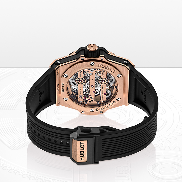 Big Bang MECA-10 รุ่นต้นฉบับ เปิดตัวครั้งแรกเมื่อปี 2016 และได้สร้างปรากฏการณ์ใหม่ในวงการนาฬิกาด้วยรูปแบบอันมีเอกลักษณ์ โดยมีแผ่นฐานวงแหวนที่เชื่อมต่อกับสะพานจักร สร้างผลลัพธ์ของการออกแบบที่สะกดสายตาด้วยโครงสร้างที่แข็งแกร่ง ซึ่งในครั้งนี้ Hublot ได้กลับมาพัฒนาโครงสร้างกลไกไขลานด้วยมือแบบสเกเลตันในรูปแบบที่เปิดกว้างและดูกลมกลืนยิ่งขึ้น แต่ยังคงรักษาจุดเด่นของดีไซน์ดั้งเดิมไว้อย่างครบครัน พร้อมการตกแต่งและขัดแต่งที่พิถีพิถันยิ่งขึ้น สำหรับทีมวิศวกรและช่างผลิตนาฬิกาของ Hublot ความท้าทายคือการรักษาเอกลักษณ์อันโดดเด่นของ MECA-10 ไว้ทั้งหมด ในขณะเดียวกันก็ลดขนาดของกลไกให้เหมาะสมกับตัวเรือน Big Bang ขนาด 42 มม. โดยไม่ลดทอนประสิทธิภาพในการทำงาน
