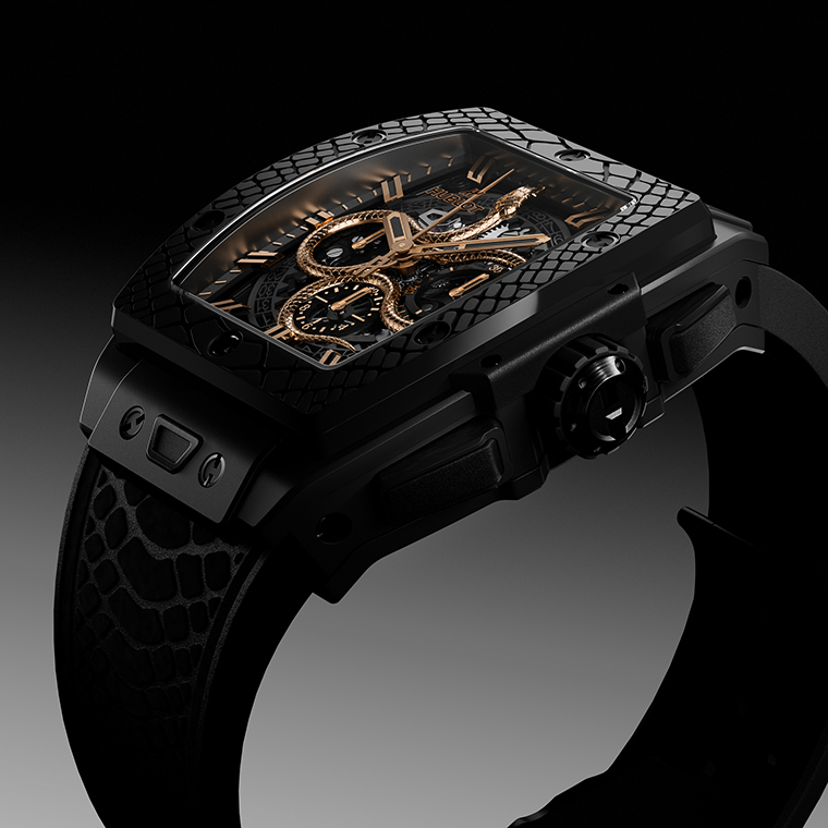 งูถือเป็นสัญลักษณ์แห่งสติปัญญา เสน่ห์ และการเปลี่ยนแปลง อีกทั้งยังมีความสำคัญอย่างยิ่งในจักรราศีจีน นับตั้งแต่ปี 2016 ในแต่ละปีทาง Hublot (อูโบลท์) ได้เฉลิมฉลองเทศกาลตรุษจีนด้วยผลงานศิลปะรุ่นพิเศษ Spirit of Big Bang (สปิริต ออฟ บิ๊ก แบง) ที่รังสรรค์ขึ้นอย่างบรรจง โดยนำเสนอสัตว์มงคลเหล่านี้ในรูปแบบร่วมสมัยและเปี่ยมด้วยความคิดสร้างสรรค์ ซึ่งในปีนี้ Hublot ได้สร้างสรรค์ผลงานอย่างประณีตเพื่อถ่ายทอดเสน่ห์ของงูผ่านพื้นหน้าปัดตลอดไปจนถึงตัวเรือนและสายนาฬิกา ในรุ่น Spirit of Big Bang Year of the Snake (สปิริต ออฟ บิ๊ก แบง เยียร์ ออฟ เดอะ สเนค) ผลงานลิมิเต็ดเอดิชั่นที่ผลิตจำนวนจำกัดเพียง 88 เรือนเท่านั้น