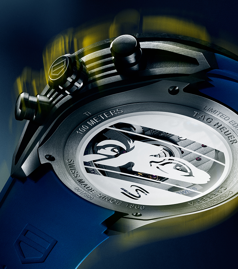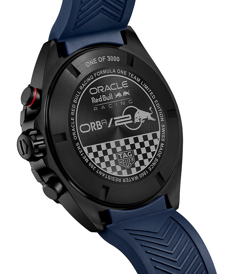 ด้วยดีไซน์สปอร์ตสุดเร้าใจที่ออกแบบมาให้พร้อมสำหรับทุกความท้าทาย ตัวเรือนมาพร้อมฝาหลังที่สลักข้อความพิเศษ "ONE OF 3000" และโลโก้ฉลองครบรอบ 20 ปีของ ORBR พร้อมเสริมความสปอร์ตด้วยสายนาฬิกายางสีน้ำเงินที่มากับพื้นผิวพิเศษและหัวเข็มขัดสลักชื่อ TAG Heuer ตอกย้ำถึงการเป็นสัญลักษณ์ของความเร็วและจิตวิญญาณแห่งการแข่งขันในทุกวินาที