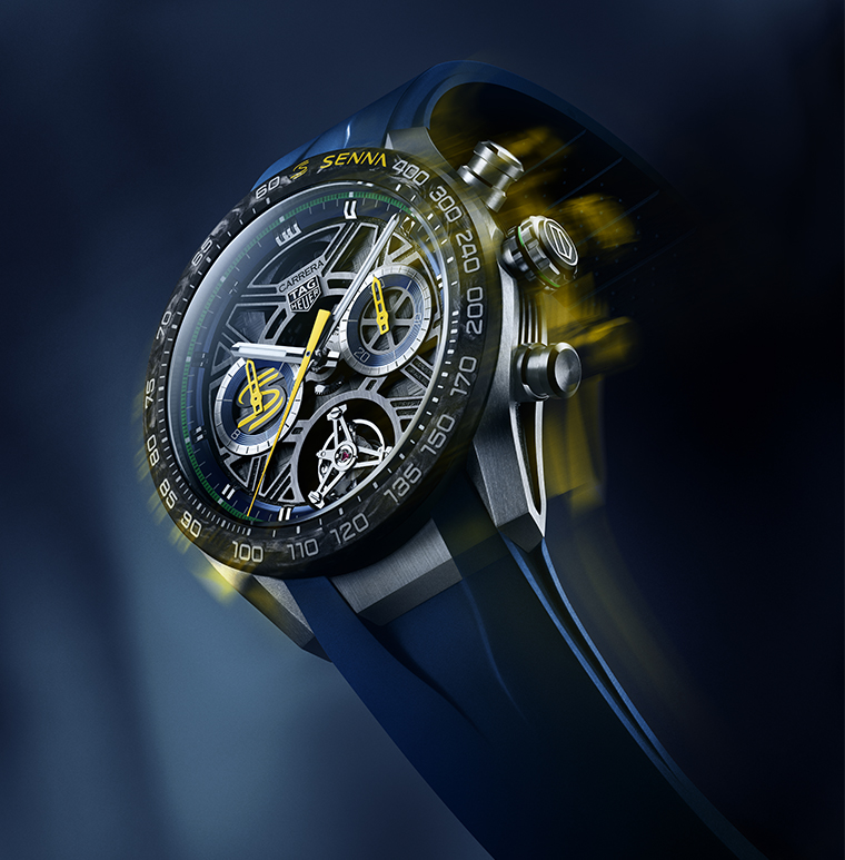 อีกหนึ่งความร่วมมือแห่งประวัติศาสตร์ของวงการมอเตอร์สปอร์ต TAG Heuer จับมือกับ Senna Brand สร้างสรรค์นาฬิการุ่น TAG Heuer Carrera Extreme Sport Chronograph Tourbillon X Senna เพื่อยกย่องแด่นักแข่งผู้กล้าในตำนานของ F1 อย่าง Aryton Senna ผู้ล่วงลับ นาฬิกาเรือนนี้มาพร้อมตัวเรือนไทเทเนียมขนาด 44 มม. และตัววัดความเร็วสูงสุด 400 กม./ชม. หน้าปัดแบบ Skeleton ที่เผยให้เห็นการทำงานของกลไกสุดประณีต