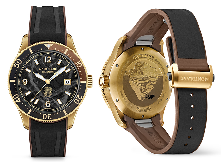 นาฬิกาที่เหมาะสำหรับผู้ที่ก้าวเข้าสู่ปีใหม่ด้วยจิตวิญญาณแห่งการผจญภัย Montblanc Iced Sea Automatic Date มาพร้อมกับหน้าปัดสีดำที่ดึงแรงบันดาลใจจาก Mer de Glace ธารน้ำแข็งหลักของ Mont-Blanc Massif ซึ่งสะท้อนถึงเนื้อสัมผัส ความลึก และสีของธารน้ำแข็งนั้นด้วยเทคนิคพิเศษที่เรียกว่า gratté-boisé นาฬิกาชิ้นนี้ยังพาผู้สวมใส่ไปยังภูเขาด้วยตัวเรือนสีทองบรอนซ์ที่เลียนแบบสีของพระอาทิตย์ตกดินเหนือธารน้ำแข็ง Montblanc Iced Sea Automatic Date มีคุณสมบัติกันน้ำลึกถึงประมาณ 300 เมตร และมาพร้อมกับขอบตัวเรือนอะลูมิเนียมเคลือบอนิไดซ์สองสีที่หมุนได้เพียงทิศทางเดียว รวมถึงการแกะสลัก 3D ที่ฝาหลังของตัวเรือน และสายยางสีดำที่มีขอบสีน้ำตาล พร้อมระบบการปรับสายที่ละเอียดเพื่อความสะดวกสบายในการสวมใส