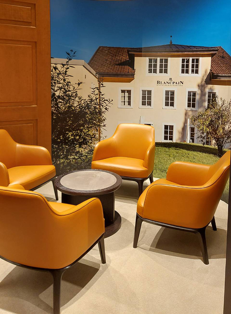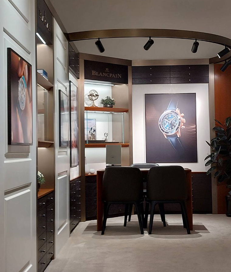 ป็อปอัพบูทิคในขนาดร่วม 120 ตารางเมตรแห่งนี้ เป็นสถานที่ที่พร้อมดูแลแขกผู้มาเยือนอย่างเต็มที่อีกทั้งยังเปิดโอกาสให้แขกได้ดื่มด่ำไปกับจักรวาลของแบรนด์อย่างลึกซึ้ง ด้วยการออกแบบอันเป็นเอกลักษณ์ซึ่งได้รับแรงบันดาลมาจากเวิร์กช็อปของ Blancpain ณ หุบเขาวัลเลย์ เดอ ฌูซ์ โดยนำเสนอรูปลักษณ์ที่กลอมกล่อมร่วมสมัย ภายใต้แนวคิดร้านในรูปแบบเลานจ์ ตกแต่งด้วยงานไม้เชอร์รี่ที่สวยสง่าล้อมกรอบด้วยโครงสร้างโลหะ และเฟอร์นิเจอร์ที่เรียบหรู ให้บรรยากาศที่อบอุ่นสบายแต่ก็ทันสมัย