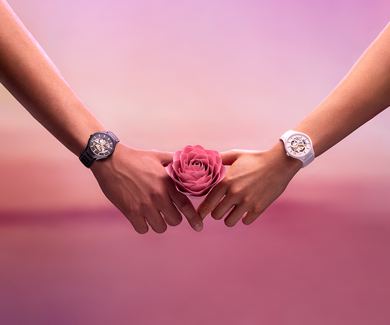 วาเลนไทน์ปีนี้ Rado มาพร้อมภาพแคมเปญที่ถ่ายทอดความรัก ความรู้สึกดีๆ ผ่านสัญลักษณ์ประจำเทศกาลอย่างดอกกุหลาบที่อยู่ในมือของคู่รัก ซึ่งสวมนาฬิกา Rado True Round Open Heart สองรุ่นสีขาว-ดำบนฉากหลังสีชมพูอ่อนหวาน นอกจากดอกกุหลาบจะเป็นตัวแทนของความรักแล้ว ยังสะท้อนถึงใจความสำคัญของนาฬิกา Rado ได้ด้วย เพราะสื่อถึงการค่อยๆ เจริญเติบโตมาตามกาลเวลา ส่วนการเรียงตัวของกลีบกุหลาบก็แสดงถึงความซับซ้อนของกลไกนาฬิกาออโตเมติก และความละเอียดอ่อนของกลีบดอกก็เหมือนสัมผัสที่นุ่มสบายของไฮเทคเซรามิก