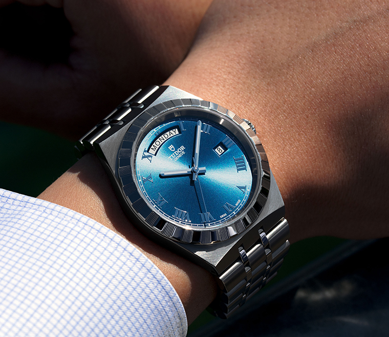 Royal เป็นคำที่ TUDOR นำมาใช้เป็นชื่อคอลเลกชันของตนเองเป็นครั้งแรกในช่วงทศวรรษ 1950 เพื่อเน้นย้ำถึงคุณภาพที่เหนือกว่าของผลิตภัณฑ์นาฬิกาของตนเองซึ่งยังคงมีวางจำหน่ายมาจนถึงทุกวันนี้ โดยมีให้เลือกทั้งสายสเตนเลสสตีลหรือสายแบบสองกษัตริย์ทองคำและสตีล พร้อมตัวเรือน 4 ขนาดให้เลือก รวมถึงตัวเลือกของหน้าปัดที่มีทั้งหมด 13 แบบที่ออกแบบมาเพื่อให้เข้ากับบุคลิกของทุกคน ลายขัดรัศมีดวงอาทิตย์บนพื้นหน้าปัดสร้างเอฟเฟกต์ที่น่าสนใจเมื่อกระทบกับแสงในมุมมองที่แตกต่าง ในส่วนของมาร์กเกอร์แทนหลักชั่วโมงก็มีให้เลือกทั้งแบบตัวเลขโรมัน หรือแบบผสมผสานกับการประดับเพชร 8 เม็ด ที่เพิ่มความงดงามและเปล่งประกายอย่างน่าดึงดูดใจ