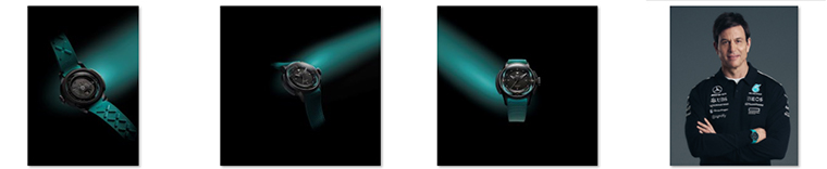 พื้นหน้าปัดสีดำพื้นผิวลายเกรน เข็มนาฬิกาทรงโปร่งและมาร์เกอร์ ที่ตำแหน่ง 3,6,9 และ 12 นาฬิกา เคลือบสารเรืองแสง Super-LumiNova สีเขียวเปโตรนัสกรีน ภายในทำงานด้วยกลไก in-house อัตโนมัติ Cal. 32101 ความถี่ 28,800 ครั้งต่อชั่วโมง สะสมพลังงานยาวนาน 120 ชั่วโมง ฝาหลังกรุกระจกคริสตัลแซฟไฟร์ พร้อมลายเซ็นของ Toto Wolff สวมใส่คู่สายสองรูปแบบทั้งสายยางสีเขียวเปโตรนัสกรีน หรือสายยางเสริมเนื้อผ้าสีดำ ผลิตในจำนวนจำกัด 100 เรือน