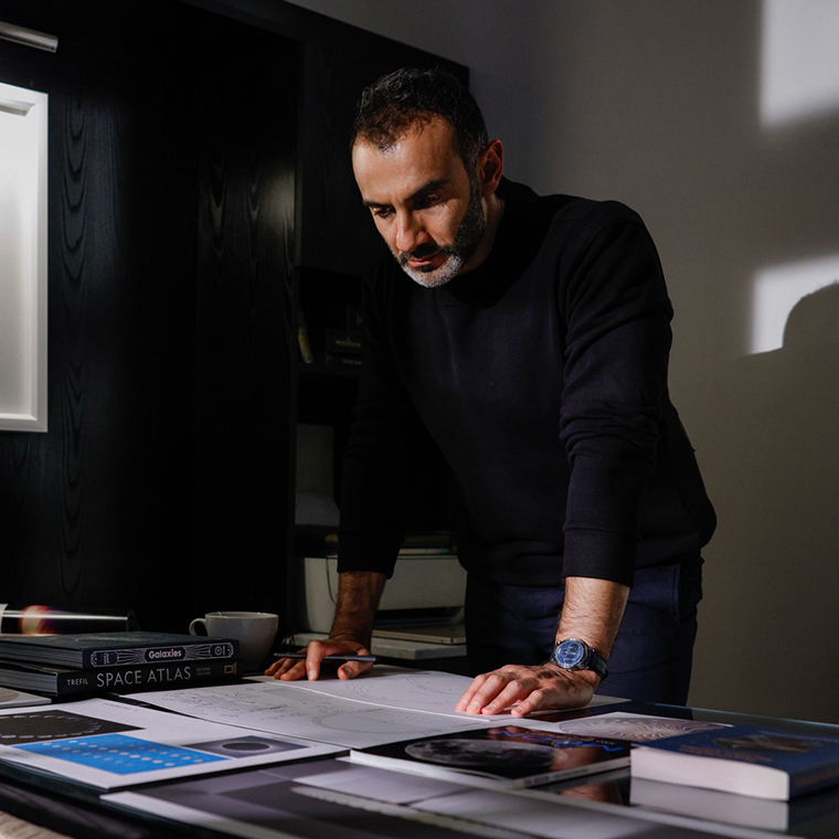 ผลงานสร้างสรรค์ของ Khalid Safar โดดเด่นในเรื่องการผสมผสานระหว่างมรดกทางวัฒนธรรมของชาวเอมิ เรติกับองค์ประกอบการออกแบบร่วมสมัย โดยเป็นการผสมผสานที่ล้ำลึกระหว่างรูปแบบและฟังก์ชันการใช้งานแรงบันดาลใจจากช่วงเวลาแห่งเดือนรอมฎอนอันศักดิ์สิทธิ์ ความร่วมมือที่เป็นเอกลักษณ์ครั้งนี้ได้ผสมผสานเรื่องราวการสังเกตการณ์ปรากฎการบนท้องฟ้าเข้ากับงานฝีมืออันประณีต เป็นการสะท้อนถึงความเชื่อโยงอย่างลึกซึ้งระหว่างการประดิษฐ์นาฬิกาและกาลเวลา