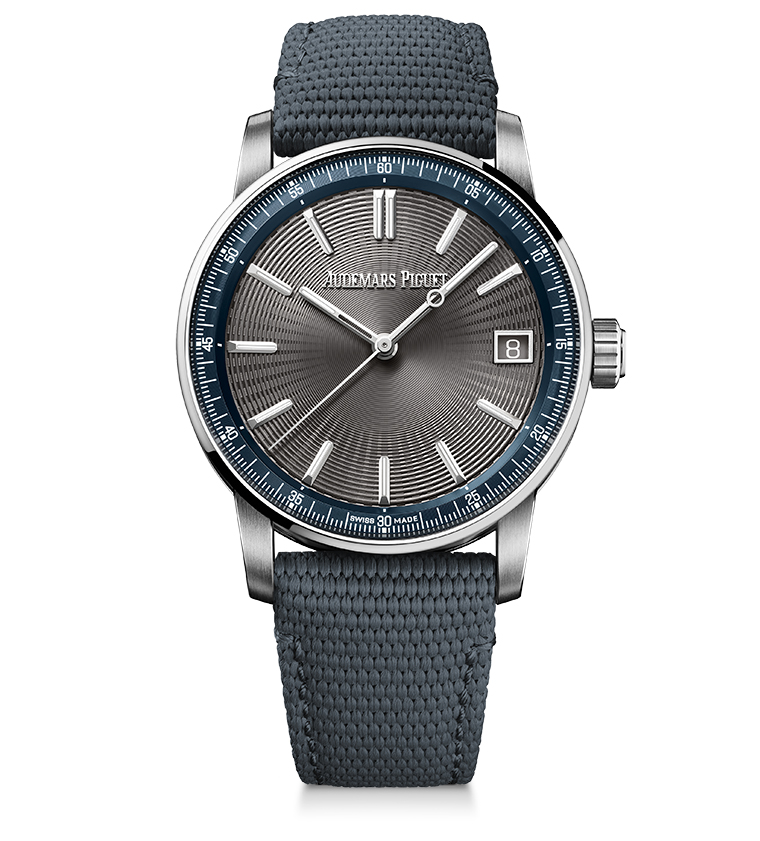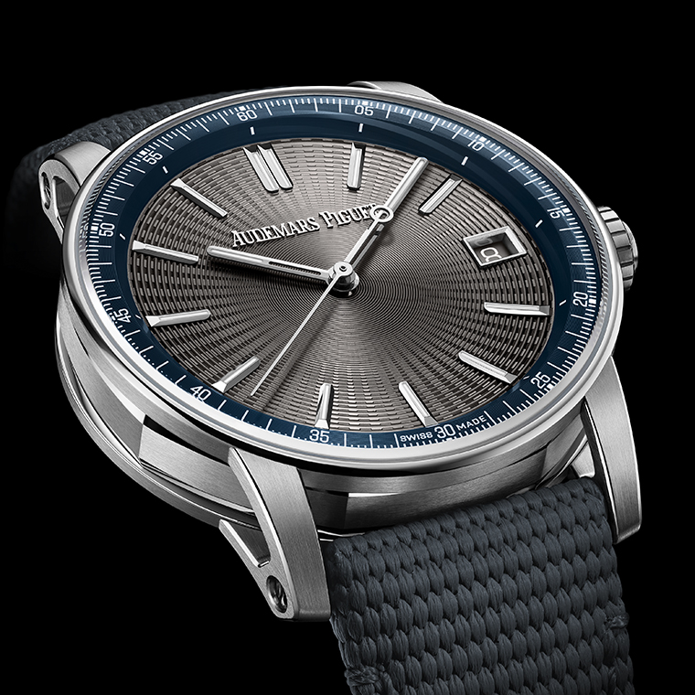 นอกเหนือจากนั้น นาฬิการุ่นใหม่นี้ยังมาพร้อมรายละเอียดที่โดดเด่นของเครื่องหมายบอกหลักชั่วโมงทรงเหลี่ยมขัดเงาที่มีรูปทรงยาวกว่าปกติ รวมถึงเข็มชั่วโมงและเข็มนาที ทั้งหมดเป็นไวท์โกลด์ 18 กะรัตเคลือบวัสดุเรืองแสง เพื่อให้การอ่านเวลาทำได้ดีที่สุดเมื่ออยู่ในที่มืด สายยางสีเทามีเท็กซ์เจอร์พร้อมบุด้านในด้วยหนังลูกวัวทำให้นาฬิกาเรือนนี้ดูสมบูรณ์แบบยิ่งขึ้น