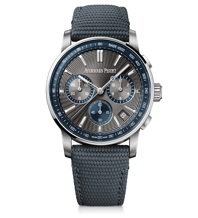 นาฬิกาทั้งสองเรือนซึ่งรังสรรค์ขึ้นจากสแตนเลส สตีลทั้งหมด มาพร้อมการตกแต่งด้วยการขัดแบบซาตินสลับกับการขัดเงาลบมุมที่เป็นเอกลักษณ์ของ Audemars Piguet จึงให้รายละเอียดของการเล่นกับแสงที่ยิ่งโดดเด่นขึ้นอีกด้วยรายละเอียดสลักเสลาหลากหลายเหลี่ยมมุมของตัวเรือน Code 11.59 by Audemars Piguet หน้าปัดสีเทาสเลตเกรย์ที่ช่วยขับความโดดเด่นของตัวเรือนสแตนเลส สตีลได้อย่างกลมกลืน ยังตัดกับสีน้ำเงิน “Bleu Nuit, Nuage 50” บนขอบตัวเรือนด้านในและบนหน้าปัดย่อยได้อย่างโดดเด่น