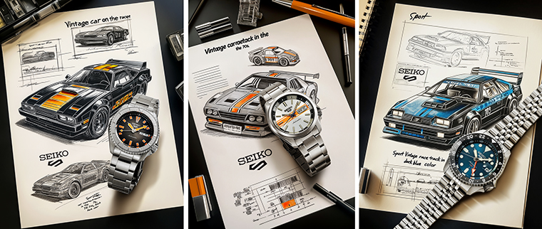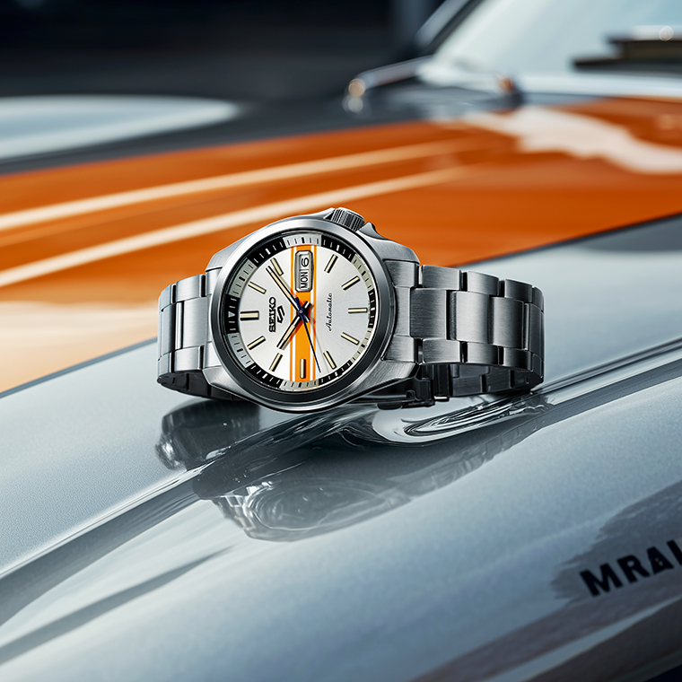 นาฬิกาในคอลเลกชันนี้สะท้อนถึงเสน่ห์ของรถแข่งคลาสสิก ในยุค 1970’s และ 1980’s ผสมผสานความเร้าใจของการแข่งขันเข้ากับความแข็งแกร่งและสไตล์อันเป็นเอกลักษณ์ของนาฬิกา Seiko 5 Sports
