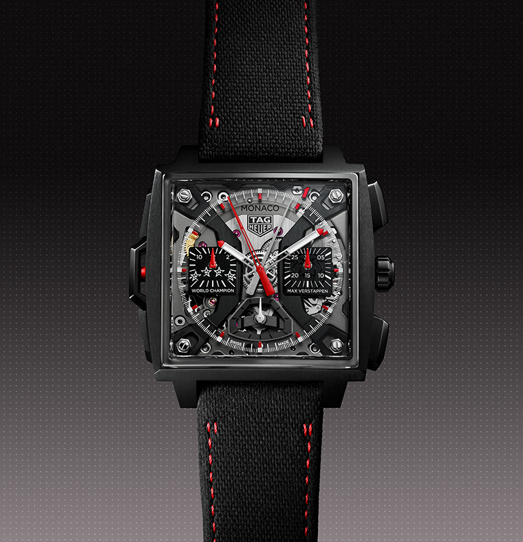 Max Verstappen จะสวมนาฬิการุ่น TAG Heuer Monaco Split-Seconds Chronograph รุ่นพิเศษ ใน Paddock ซึ่งออกแบบมาเพื่อสะท้อนถึงความเป็นสุดยอดในวงการมอเตอร์สปอร์ต หน้าปัดของนาฬิกาบอกเล่าเรื่องราวแห่งความสำเร็จ หน้าปัดย่อยด้านหนึ่งสลักดาวสี่ดวงพร้อมปีที่เขาคว้าแชมป์โลก และมีคำว่า World Champion อยู่ด้านล่าง เป็นสัญลักษณ์แห่งการครองบัลลังก์สูงสุด ขณะที่หน้าปัดย่อยอีกด้านประดับด้วยโลโก้สิงโตอันเป็นสัญลักษณ์ของเขา พร้อมกับชื่อของเขาเอง อีกทั้งเลข 1 ที่ตำแหน่ง 1 นาฬิกา เป็นการแสดงออกถึงการเป็นแชมป์ของเขาอย่างชัดเจน