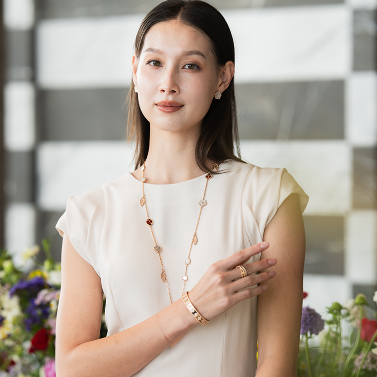 Van Cleef & Arpels เฉลิมฉลองฤดูใบไม้ผลินี้ ด้วยความงดงามของธรรมชาติผ่านเครื่องประดับคอลเลกชัน Lucky Spring และ Frivole ณ โรงแรมดุสิตธานี กรุงเทพ โดยนำเสนอเครื่องประดับอันประณีต และพิถีพิถันซึ่งถ่ายทอดความงดงามยามดอกไม้ผลิบานไม่ว่าจะเป็น จี้สร้อยคอ, แหวนหว่างนิ้ว (Between the finger), สร้อยข้อมือ, ต่างหู และเข็มกลัด ซึ่งสะท้อนถึงความมีชีวิตชีวาและเสน่ห์แห่งฤดูกาล พร้อมนำสวนศิลปะแห่งจินตนาการของ Alexandre Benjamin Navet ศิลปินชาวฝรั่งเศส ผู้ร่วมงานกับเมซงตั้งแต่ปี 2020 มาเติมเต็มบรรยากาศแห่งการผลิบานอย่างงดงาม