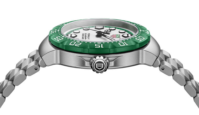 จากรุ่นเดิมขนาด 35 มม. สู่รุ่นใหม่ขนาด 38 มม. ที่ยังคงรักษาเอกลักษณ์ “décroché” ซึ่งช่วยเสริมความหรูหราให้กับนาฬิกา สร้างความสมดุลที่สมบูรณ์แบบระหว่างความสปอร์ตและการใช้งานในชีวิตประจำวัน โดยออกแบบมาให้เหมาะสมกับขนาดข้อมือที่หลากหลาย การปรับปรุงตามหลักสรีรศาสตร์ทำให้การสวมใส่สบายขึ้นอย่างมาก ในขณะที่ยังคงความโดดเด่นของนาฬิการุ่น TAG Heuer Formula 1 เป็นที่รู้จัก หลักบอกเวลาเคลือบด้วยสารเรืองแสง Super-LumiNova® ที่ได้รับการปรับโฉมผ่านการตีความใหม่ของเครื่องหมายรูปโล่อันเป็นเอกลักษณ์ ปรากฏในรูปแบบประยุกต์เพื่อยกระดับความสวยงามของนาฬิกา เข็มนาฬิกาที่ได้รับแรงบันดาลใจจากการออกแบบดั้งเดิมได้รับการปรับแต่งใหม่ด้วยการตกแต่งที่ยกระดับและสัดส่วนที่ดีขึ้น เพื่อเสริมสร้างลักษณะหรูหราของนาฬิกา ซึ่งช่วยให้มองเห็นเวลาได้ชัดเจนในทุกสภาพแสง ขณะที่สัดส่วนของเคสที่ได้รับการปรับโครงสร้างใหม่ช่วยเพิ่มทั้งความสบายและการมองเห็น