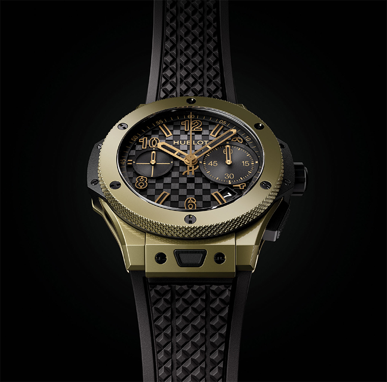 ความพยายามครั้งแรกของ Hublot ในการเข้าสู่โลกของวัสดุศาสตร์ โดย Magic Gold สมชื่ออย่างแท้จริง ซึ่งถูกประกาศในปี 2011 ว่าเป็นโลหะผสมทองคำ 18K ที่ทนทานต่อรอยขีดข่วนเพียงหนึ่งเดียวในโลก Magic Gold เป็นตัวแทนของสิ่งที่แผนก RCD ของ Hublot พยายามค้นหามาตลอด: การค้นพบทางเลือกใหม่ๆ เพื่อความคิดสร้างสรรค์ และการขจัดข้อจำกัดของวัสดุและโลหะดั้งเดิม Magic Gold ผสมผสานความทนทานของเซรามิกเข้ากับความแวววาวและเงางามของทองคำ สร้างวัสดุที่มีสีทองประกายพร้อมโทนสีเขียวเล็กน้อย และมีความแข็งที่ทำให้ทนทานต่อรอยขีดข่วนและการเกิดออกซิเดชั่นได้อย่างดี พัฒนาและผลิตภายในโรงงานของ Hublot เอง โดย Magic Gold จึงเป็นวัสดุที่เหมือนกับในนิยายวิทยาศาสตร์ สำหรับรุ่น Big Bang 20th Anniversary Magic Gold ผลิตจำนวนจำกัดเพียง 100 เรือน นำเสนอโลหะผสมทองคำ 18K ที่มีเอกลักษณ์ พร้อมหน้าปัดลายคาร์บอนและเข็มและเครื่องหมายสีทอง เพื่อสร้างความแตกต่างที่ลงตัวระหว่างโทนสีและพื้นผิวที่ดูทันสมัย