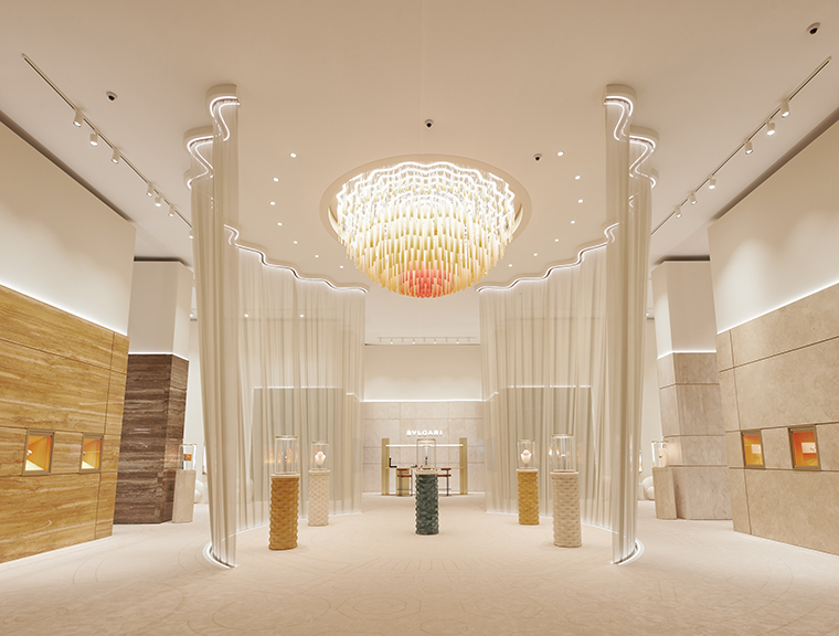จากการถ่ายทอดจิตวิญญาณโรมันอันล้ำลึกของบุลการี รังสรรค์ให้พื้นที่จัดนิทรรศการมีลักษณะเชิญชวนผู้เยี่ยมชมดื่มด่ำกับวัฒนธรรมอิตาเลียนของเมซง รวมทั้งความสง่างามอันเป็นเอกลักษณ์และวิสัยทัศน์สร้างสรรค์อันล้ำสมัยผ่านหินอ่อนเฉดสีที่สวยที่สุดและการผสมผสานวัสดุอันล้ำค่า ให้ประสบการณ์อันน่าจดจำ เริ่มตั้งแต่ด้านหน้าประกอบด้วยสถาปัตยกรรมโรมันแบบราซิโอนาลิสตา (Razionalista) ที่สร้างความตระการตาให้กับผู้ชมในทันที ส่วนด้านในมีการจัดแสดงผลงาน 7 ชิ้นที่ได้รับการคัดสรรมาอย่างดี และได้รับแรงบัลดาลใจจาก “บี ยอนด์ ไทม์” (Beyond Time) ซึ่งถือเป็นบันทึกประวัติศาสตร์นาฬิกาของเมซงที่สมบูรณ์ที่สุดเพื่อนำพาผู้เยี่ยมชมเข้าสู่จักรวาลของบุลการี ผลงานจัดแสดงแต่ละชิ้น เปรียบเสมือนแต่ละบทที่เล่าเรื่องราวการสร้างสรรค์อันเป็นเอกลักษณ์ ภาพถ่ายต่าง ๆ ที่ถูกเก็บไว้ สะท้อนถึงบริบททางประวัติศาสตร์สำหรับชิ้นงานอันโดนเด่น ซึ่งสร้างบทสนทนาระหว่างผลงานในอดีตจนถึงปัจจุบัน