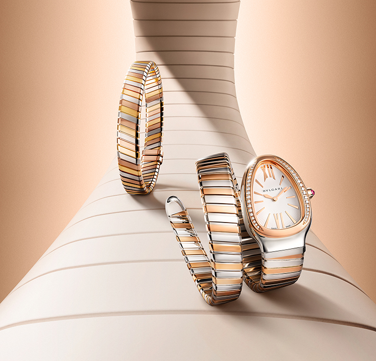 บุลการี เปิดตัวเซอร์เพนติ เอเทอร์นาในสีโรสโกลด์ประดับเพชร เช่นเดียวกับการตีความเครื่องประดับชั้นสูงในรูปแบบของไวท์โกลด์และฝังเพชรพาเว่ทั้งเรือน อัญมณีล้ำค่านี้ส่องสว่างให้หน้าปัดนาฬิกาเปรียบเสมือนมีหิมะปกคลุม รวมทั้งยังมีอัญมณีประดับไปตามแนวกระดูกสันหลังยาวไปจนถึงปลายหางของงู ในนาฬิการุ่นไวท์โกลด์นั้นมีอัญมณีขนากใหญ่ช่วยสร้างเอกเฟกต์สามมิติ และช่วยเพิ่มมิติอันน่าหลังไกลให้กับนาฬิกา