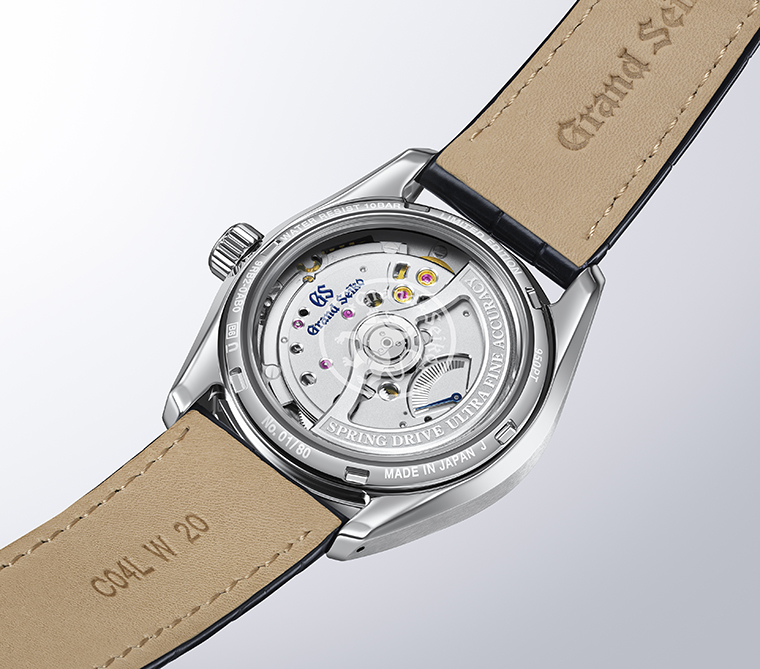 ความสวยงามของกลไกเผยให้เห็นผ่านฝาหลังกรุกระจกแซพไฟร์ โดยสร้างความแวววาวด้วยพื้นผิวที่ถูกขัดเงาดุจกระจกบนแนวลาดของส่วนขอบ ดีไซน์ที่ได้แรงบันดาลใจมาจากสภาพแวดล้อมทางธรรมชาติ ของ ชินชู วอทช์ สตูดิโอ อันเป็นแหล่งผลิตนาฬิการุ่นนี้ สะท้อนให้เห็นถึงความงามอันเป็นเอกลักษณ์ เฉพาะตัวของญี่ปุ่นที่โดดเด่นด้วยเสน่ห์ของความสง่างามอย่างเรียบง่าย ชิ้นทับทิมที่ปรากฎเปรียบเสมือน ดวงดาวที่เปล่งประกายระยิบระยับอยู่เหนือภูเขาในช่วงต้นฤดูหนาว ขณะที่พื้นผิวกลไก งถูกตกแต่งอย่าง ละเอียดอ่อนนั้นสะท้อนถึงนํ้าค้างแข็งในฤดูหนาวที่ปกคลุมเหล่าต้นไม้ในชินชู ซึ่งเป็นแหล่งผลิตนาฬิกา Grand Seiko กลไก สปริงไดรฟ์ ทุกเรือน