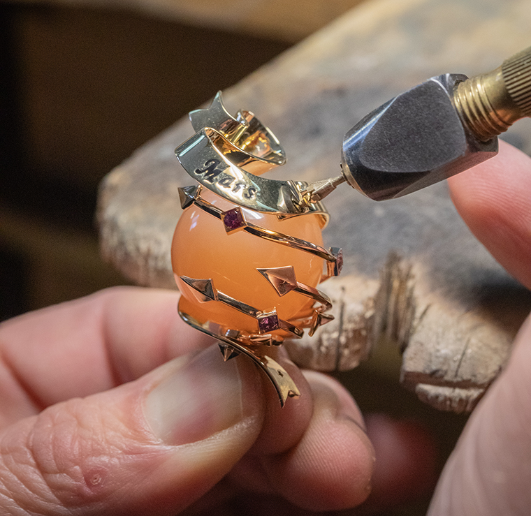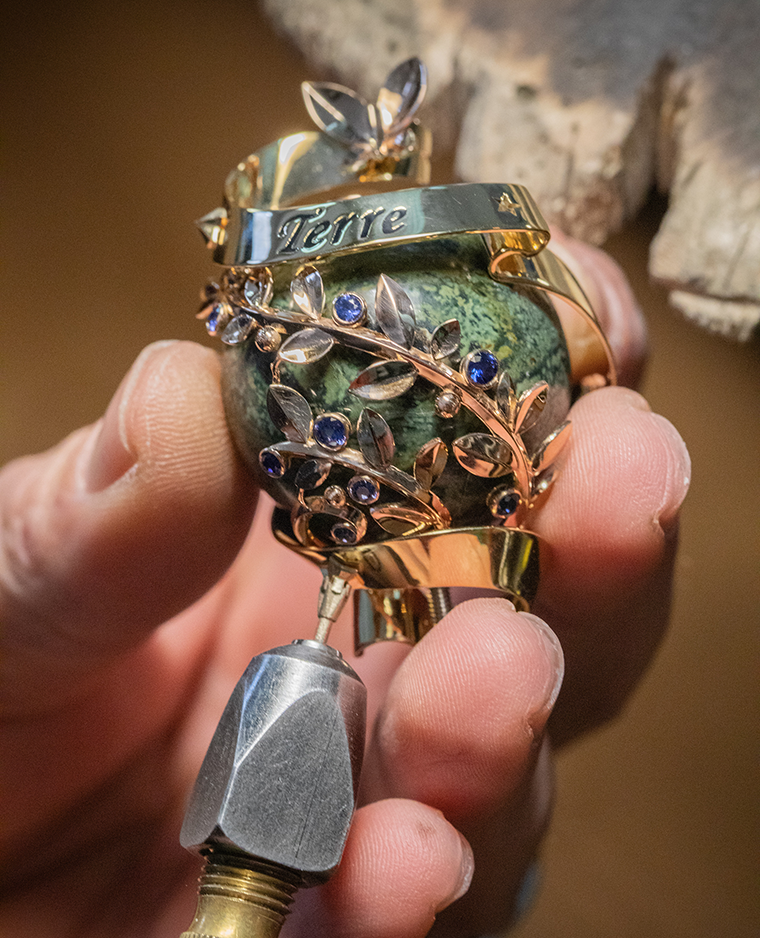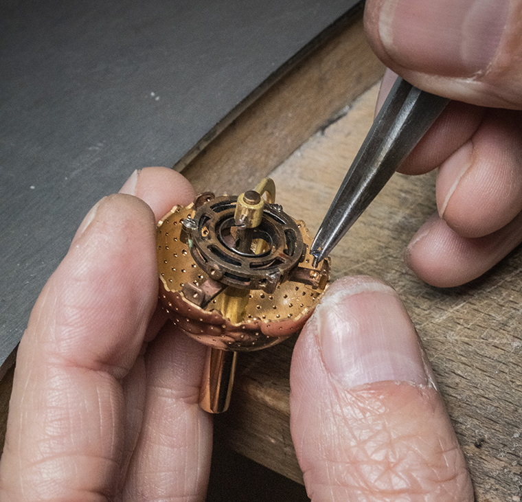 สำหรับปีนี้ เมซงสรรค์สร้าง Extraordinary Object หรือ “ผลงานศิลปะวัตถุเหนือสามัญ” ชิ้นใหม่ไว้ในคอลเลกชันนาฬิกาตั้งโต๊ะจักรกลดาราจักรจำลอง โดยอาศัยการเลือกใช้วัสดุต่างคุณสมบัติและต่างเฉดสี