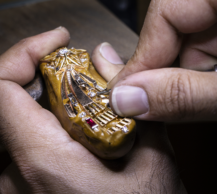 ด้วยความเฉียบคมในการคัดสรร และนำหลากวัสดุเลอค่ามาแปรรูป ประกอบร่วมเป็นโครงสร้าง ประดิษฐกรรมสุดแยบคาย แต่ละผลงานเหล่านี้ ได้กลายเป็นเวทีแห่งการแลกเปลี่ยนความชำนาญต่างศาสตร์ ต่างสาขาระหว่างกลไกขับเคลื่อนหลากระบบ, งานฝีมือเครื่องประดับชั้นสูง และหัตถศิลป์ชั้นสูงแบบฉบับฝรั่งเศส ไม่ต่างอันใดจากตัวแทนความชำนาญต่างสาขาในอาณาจักรมหัศจรรย์เกินฝันของ Van Cleef & Arpels ทุกผลงานคือบทพิสูจน์ภารกิจมุ่งมั่นที่เมซงมีต่อการอนุรักษ์ และสืบสานไหวพริบในการพลิกแพลงทักษะแขนงต่างๆ ซึ่งจำต้องอาศัยความอดทน รวมถึงการใช้เวลาเป็นสำคัญ