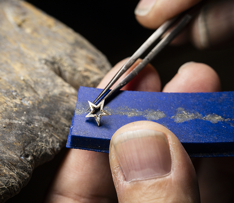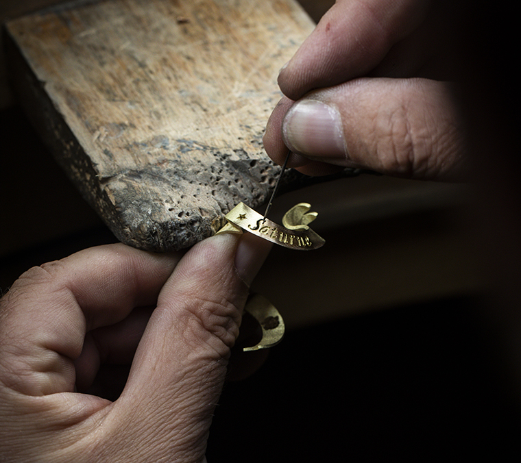 เพื่อรังสรรค์ความอัศจรรย์อันได้รับแรงบันดาลใจจากทัศนียภาพบนห้วงเวหน Van Cleef & Arpels ใส่ใจเป็นอย่างยิ่งในการคัดสรร และดำเนินกระบวนการทำงานกับวัสดุต่างๆ ไม่ว่าจะเป็นรัตนชาติ หรือโลหะล้ำค่า ซึ่งต้องถูกนำมาร้อยเรียงอยู่ร่วมกัน อย่างพระอาทิตย์ ซึ่งใช้การจัดช่อรวบก้านทองคำต่างเปลวรังสีเพลิงจำนวนมากกว่า 500 เส้นให้กระจายตัวออกมารอบแกนสุริยะทำจากทองคำสีกุหลาบประดับฝังไพลินเหลือง, โกเมนสีอัคคีหรือสเปสซาไทต์และเพชร ซึ่งเมื่อระบบขับเคลื่อนจักรกลเริ่มทำงาน เส้นทองคำต่างเปลวรังสีความร้อนสุกสว่างเหล่านี้พลันไหวกระเพื่อมสืบเนื่องจาก “ระบบสั่น” (trembleur) ที่ติดตั้งไว้ภายใน และถึงเป็นการขยับเคลื่อนเพียงเล็กน้อย รัตนชาติทั้งหลายก็ยังจรัสประกายระยิบระยับไปตามแรงแผ่วสะเทือนเสมือนการเคลื่อนไหวของเปลวเพลิงรอบดวงสุรีย์