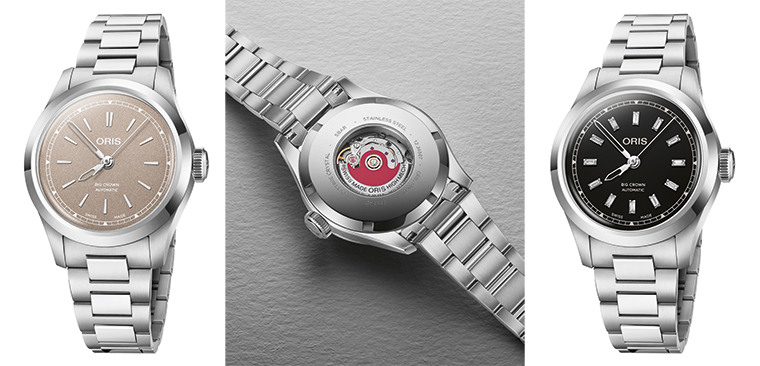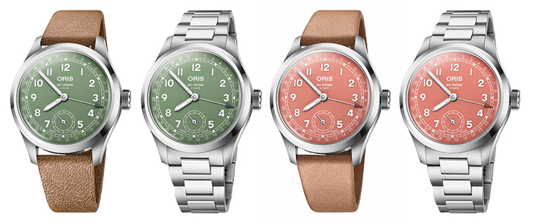 เริ่มต้นกันที่สีสันและกลไก รุ่นขนาด 40.00 มม. มาพร้อมตัวเลือกหน้าปัดสีเทอร์ราคอตตา หรือสีเขียว และขับเคลื่อนด้วยกลไก Calibre 403 ซึ่งมาพร้อมหน้าปัดย่อยแสดงเข็มวินาทีที่ตำแหน่ง 6 นาฬิกา และคุณสมบัติเด่นของกลไก Oris Calibre 400 Series (ดูรายละเอียดเพิ่มเติมที่แถบด้านขวา) นอกจากนี้ ยังมีอีกสามรุ่นในขนาด 40.00 มม. กับหน้าปัดสีเหลือง สีไลแลค หรือสีฟ้า ในโทนสดใส ซึ่งขับเคลื่อนด้วยกลไกออโตเมติก Swiss Made ส่วนรุ่นขนาด 34.00 มม. จะมากับหน้าปัดสีน้ำตาลที่มีลวดลาย หรือหน้าปัดสีดำพร้อมหลักชั่วโมงประดับเพชร lab-grown ทรงบาแก็ตคัต 12 เม็ด และขับเคลื่อนด้วยกลไกออโตเมติก Swiss Made ซึ่งสอดคล้องกับแนวทางการผลิตนาฬิกาแบบกลไกจักรกล 100% ของ Oris